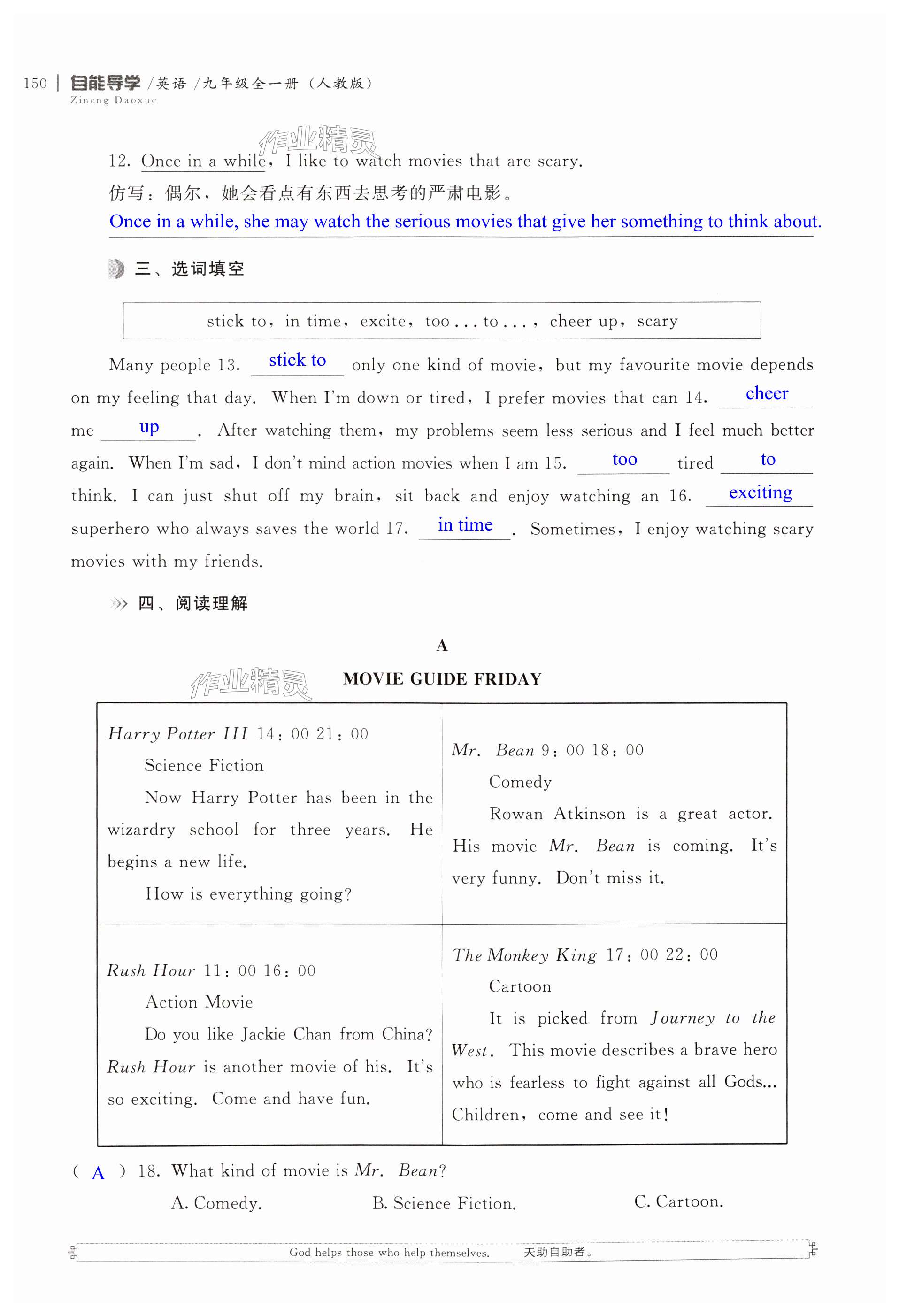注:目前有些书本章节名称可能整理的还不是很完善,但都是按照顺序排列的,请同学们按照顺序仔细查找。练习册 2024年自能导学九年级英语全一册人教版 答案主要是用来给同学们做完题方便对答案用的,请勿直接抄袭。