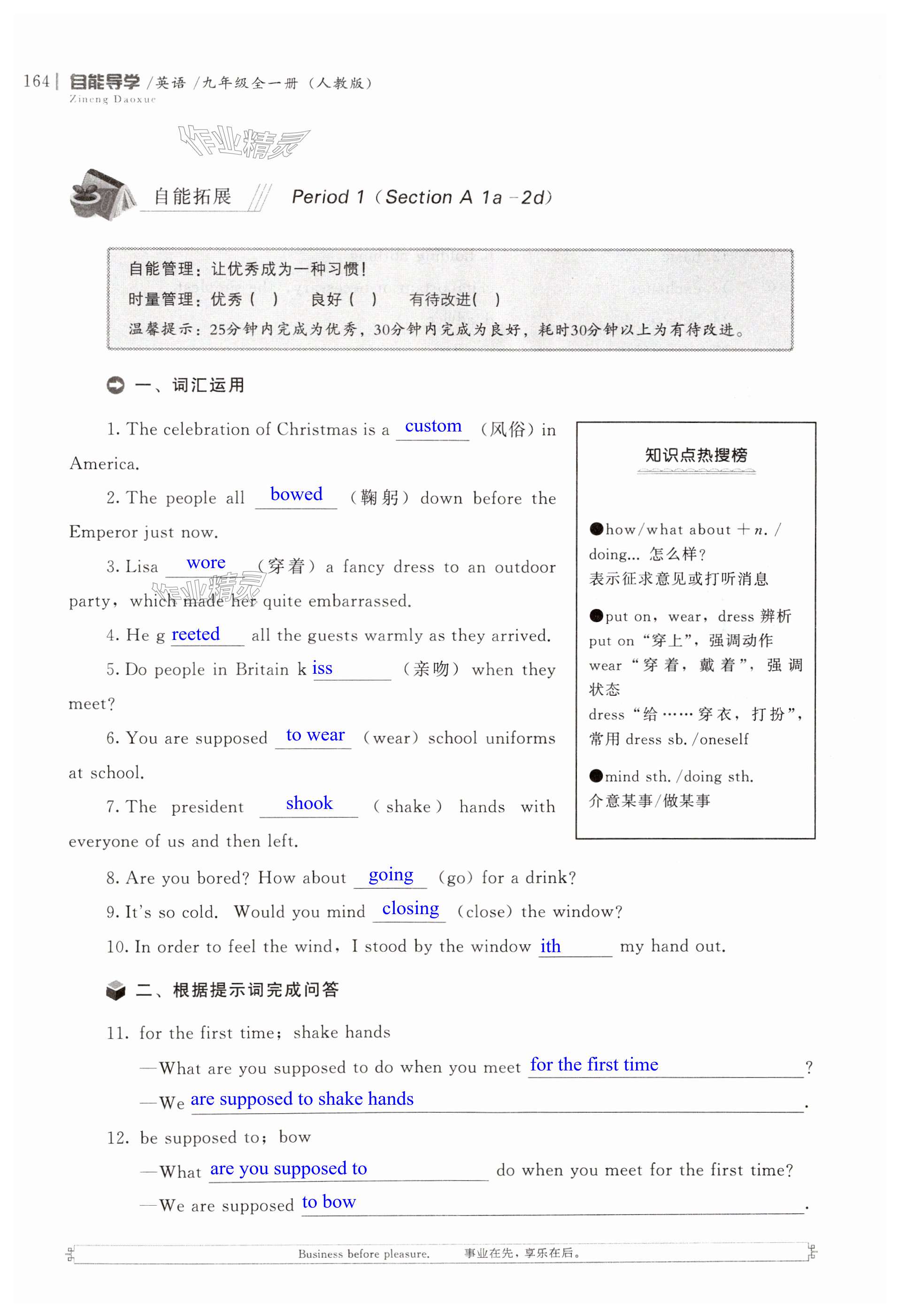 注:目前有些书本章节名称可能整理的还不是很完善,但都是按照顺序排列的,请同学们按照顺序仔细查找。练习册 2024年自能导学九年级英语全一册人教版 答案主要是用来给同学们做完题方便对答案用的,请勿直接抄袭。