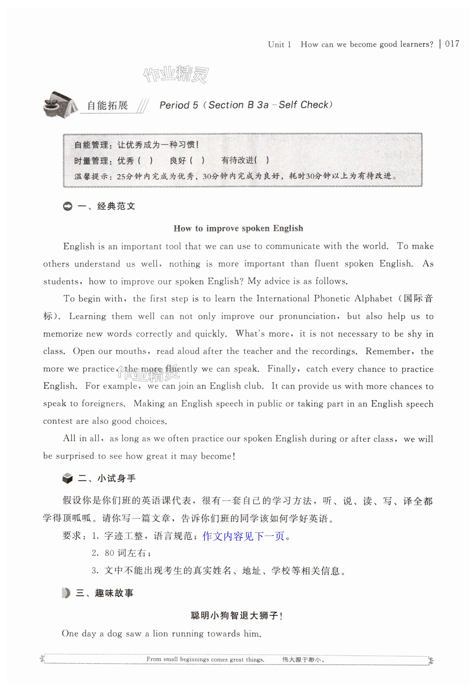 注:目前有些书本章节名称可能整理的还不是很完善,但都是按照顺序排列的,请同学们按照顺序仔细查找。练习册 2024年自能导学九年级英语全一册人教版 答案主要是用来给同学们做完题方便对答案用的,请勿直接抄袭。