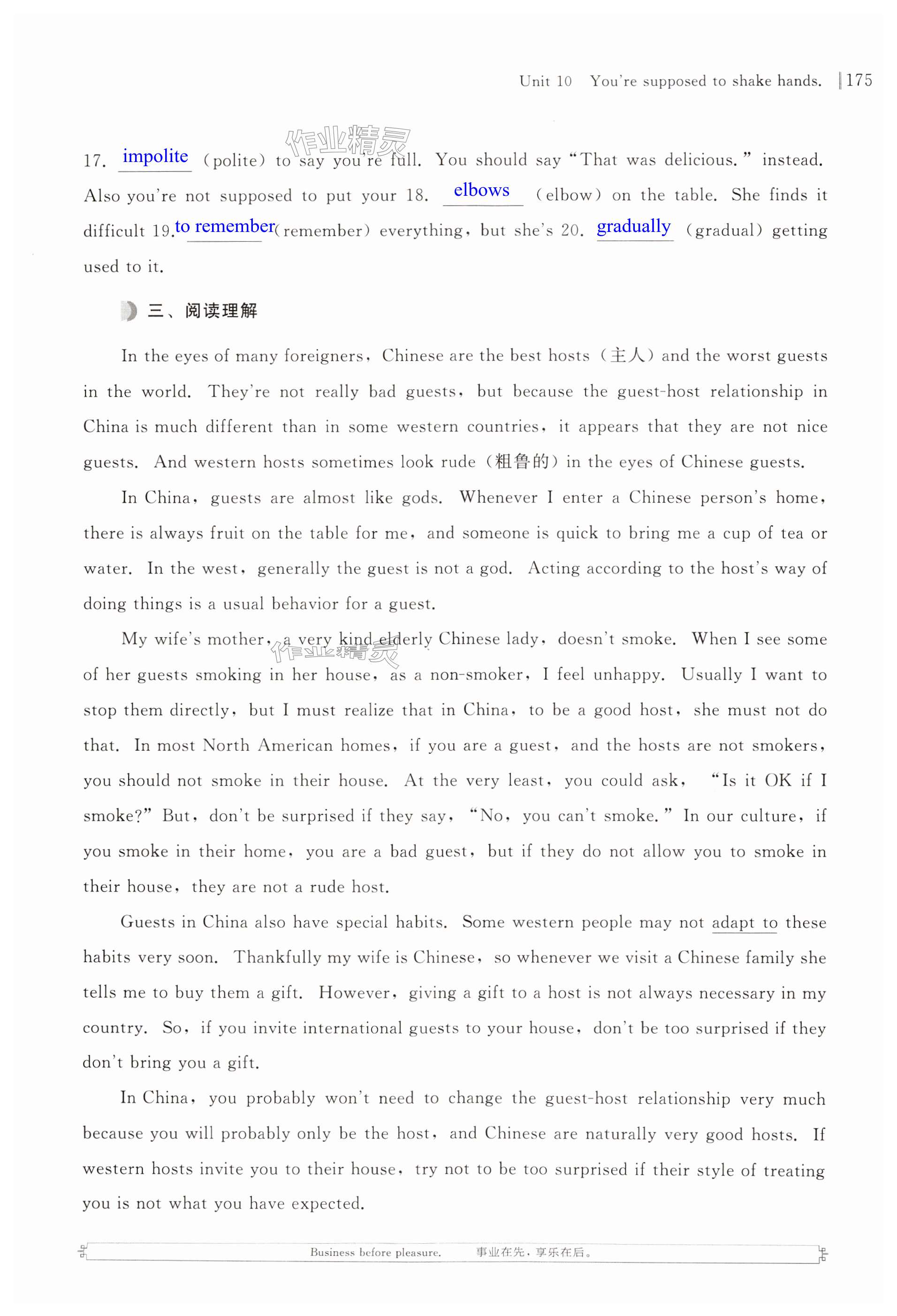 注:目前有些书本章节名称可能整理的还不是很完善,但都是按照顺序排列的,请同学们按照顺序仔细查找。练习册 2024年自能导学九年级英语全一册人教版 答案主要是用来给同学们做完题方便对答案用的,请勿直接抄袭。