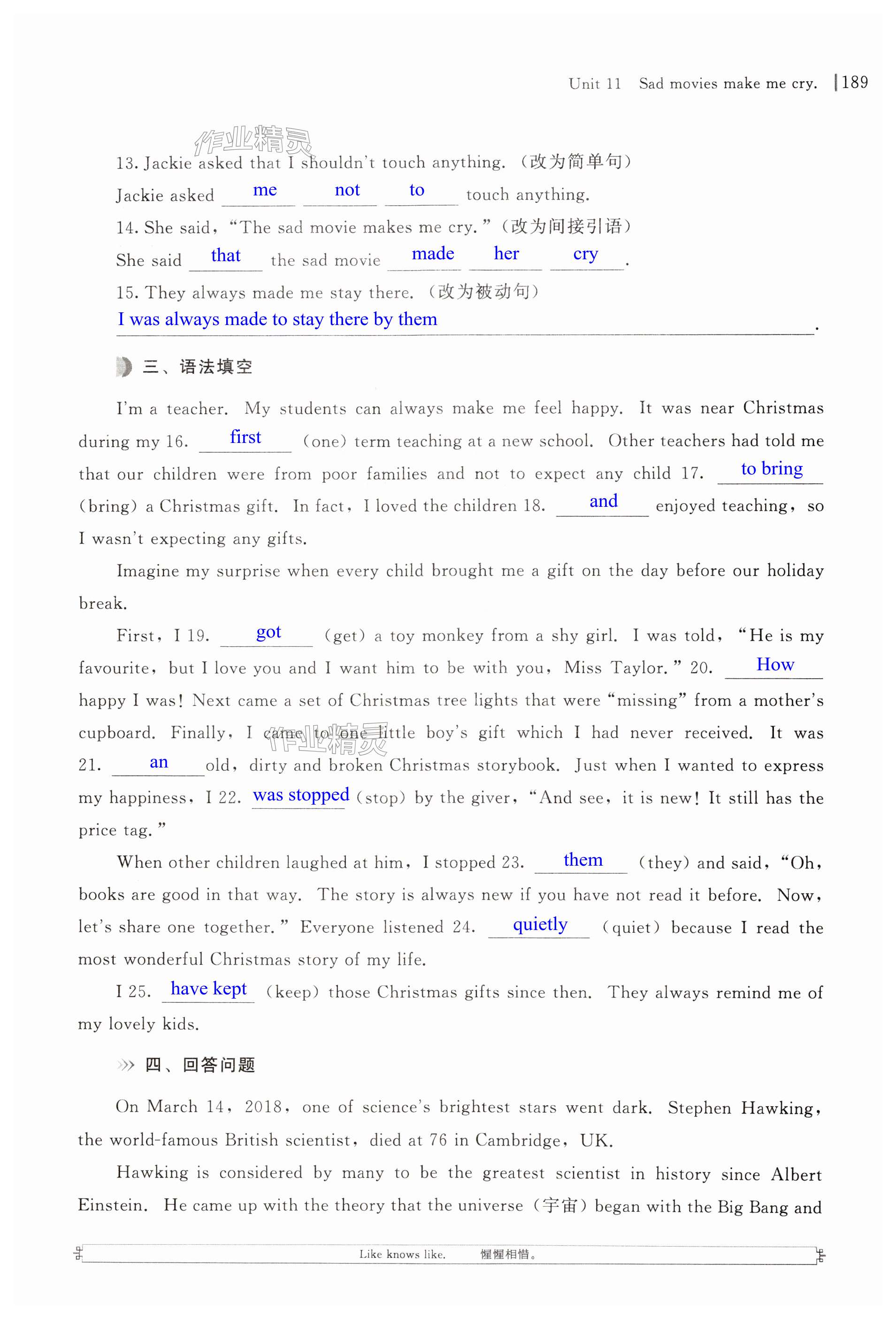 注:目前有些书本章节名称可能整理的还不是很完善,但都是按照顺序排列的,请同学们按照顺序仔细查找。练习册 2024年自能导学九年级英语全一册人教版 答案主要是用来给同学们做完题方便对答案用的,请勿直接抄袭。