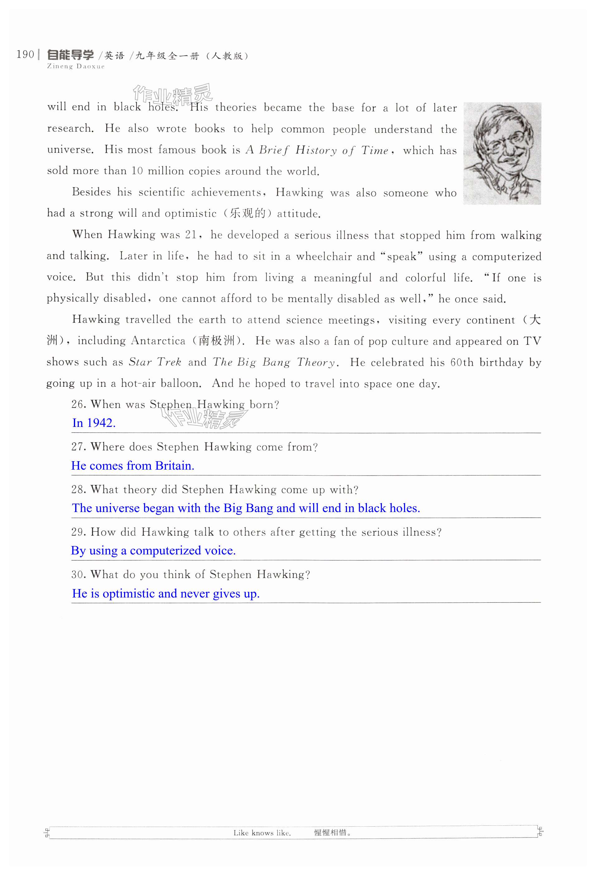 注:目前有些书本章节名称可能整理的还不是很完善,但都是按照顺序排列的,请同学们按照顺序仔细查找。练习册 2024年自能导学九年级英语全一册人教版 答案主要是用来给同学们做完题方便对答案用的,请勿直接抄袭。