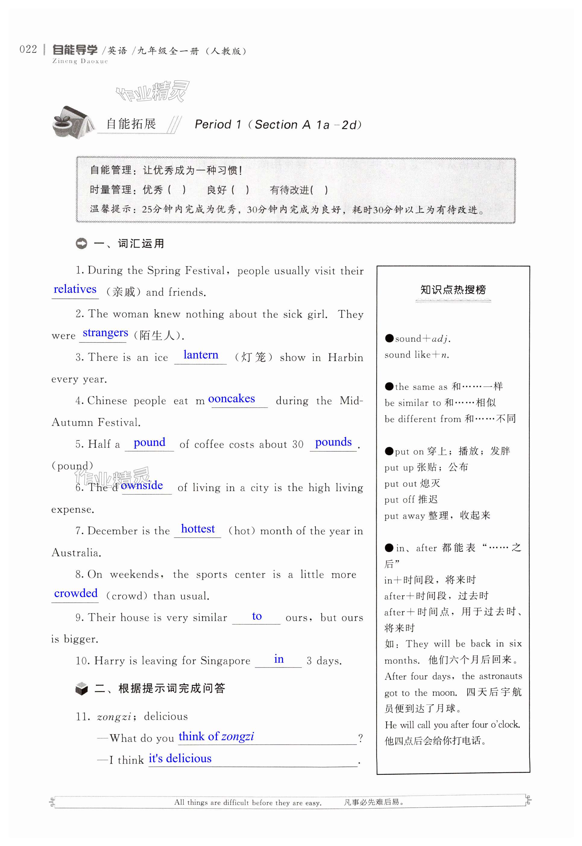 注:目前有些书本章节名称可能整理的还不是很完善,但都是按照顺序排列的,请同学们按照顺序仔细查找。练习册 2024年自能导学九年级英语全一册人教版 答案主要是用来给同学们做完题方便对答案用的,请勿直接抄袭。