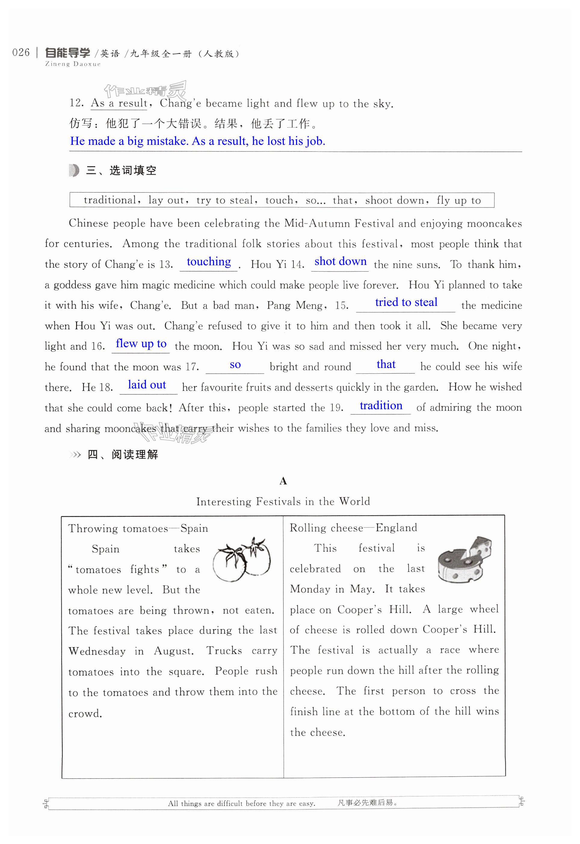 注:目前有些书本章节名称可能整理的还不是很完善,但都是按照顺序排列的,请同学们按照顺序仔细查找。练习册 2024年自能导学九年级英语全一册人教版 答案主要是用来给同学们做完题方便对答案用的,请勿直接抄袭。