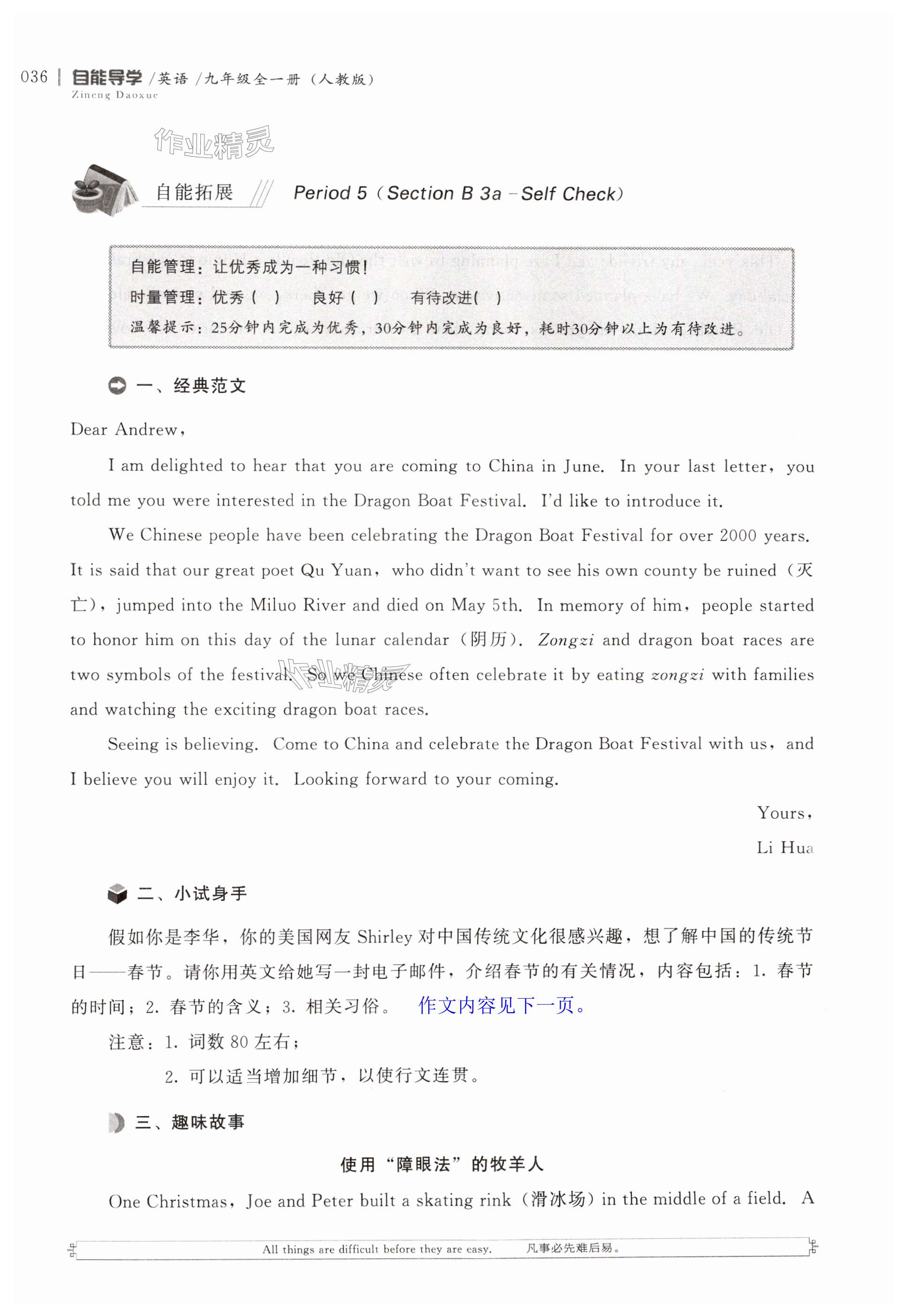 注:目前有些书本章节名称可能整理的还不是很完善,但都是按照顺序排列的,请同学们按照顺序仔细查找。练习册 2024年自能导学九年级英语全一册人教版 答案主要是用来给同学们做完题方便对答案用的,请勿直接抄袭。
