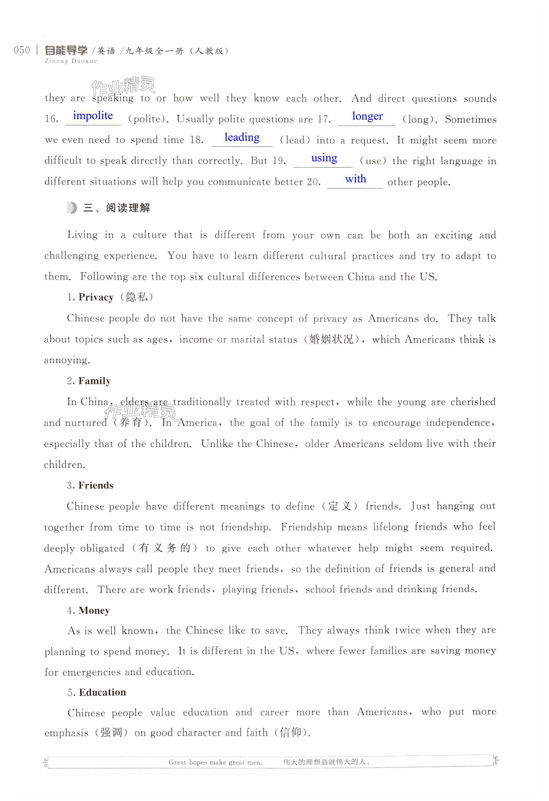 注:目前有些书本章节名称可能整理的还不是很完善,但都是按照顺序排列的,请同学们按照顺序仔细查找。练习册 2024年自能导学九年级英语全一册人教版 答案主要是用来给同学们做完题方便对答案用的,请勿直接抄袭。