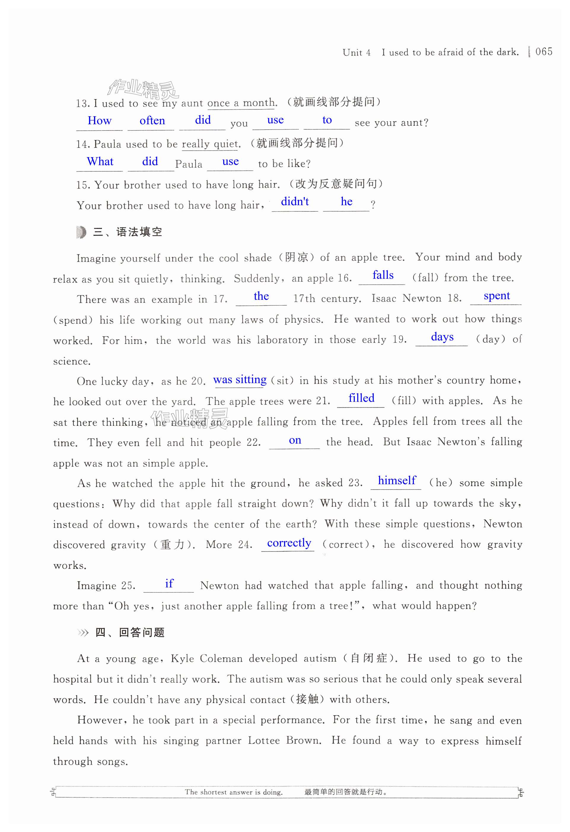 注:目前有些书本章节名称可能整理的还不是很完善,但都是按照顺序排列的,请同学们按照顺序仔细查找。练习册 2024年自能导学九年级英语全一册人教版 答案主要是用来给同学们做完题方便对答案用的,请勿直接抄袭。