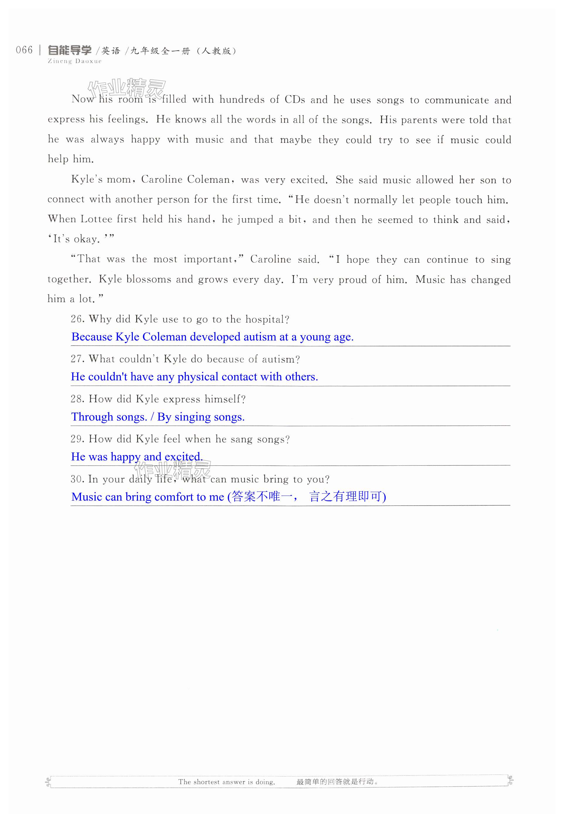 注:目前有些书本章节名称可能整理的还不是很完善,但都是按照顺序排列的,请同学们按照顺序仔细查找。练习册 2024年自能导学九年级英语全一册人教版 答案主要是用来给同学们做完题方便对答案用的,请勿直接抄袭。