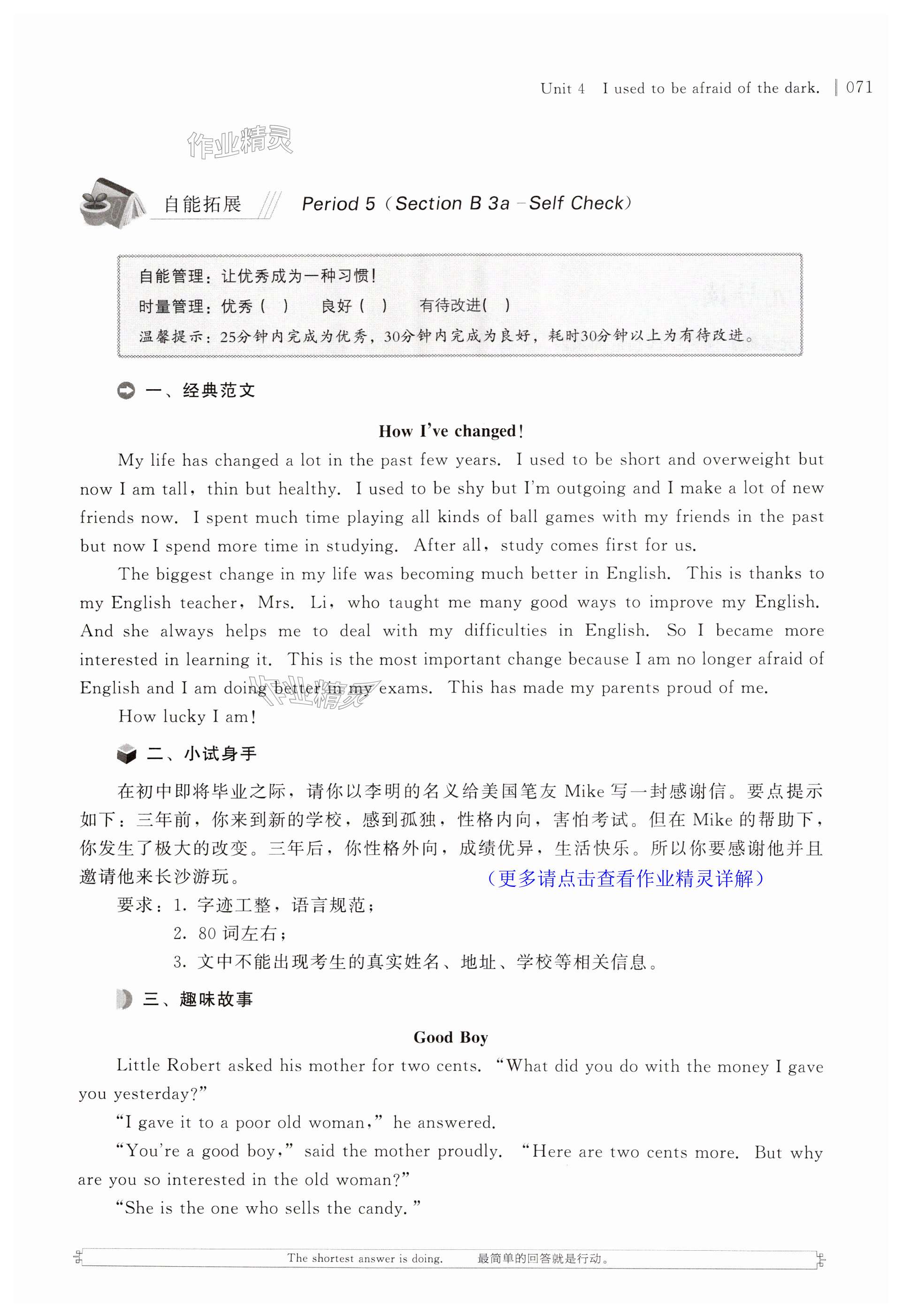 注:目前有些书本章节名称可能整理的还不是很完善,但都是按照顺序排列的,请同学们按照顺序仔细查找。练习册 2024年自能导学九年级英语全一册人教版 答案主要是用来给同学们做完题方便对答案用的,请勿直接抄袭。