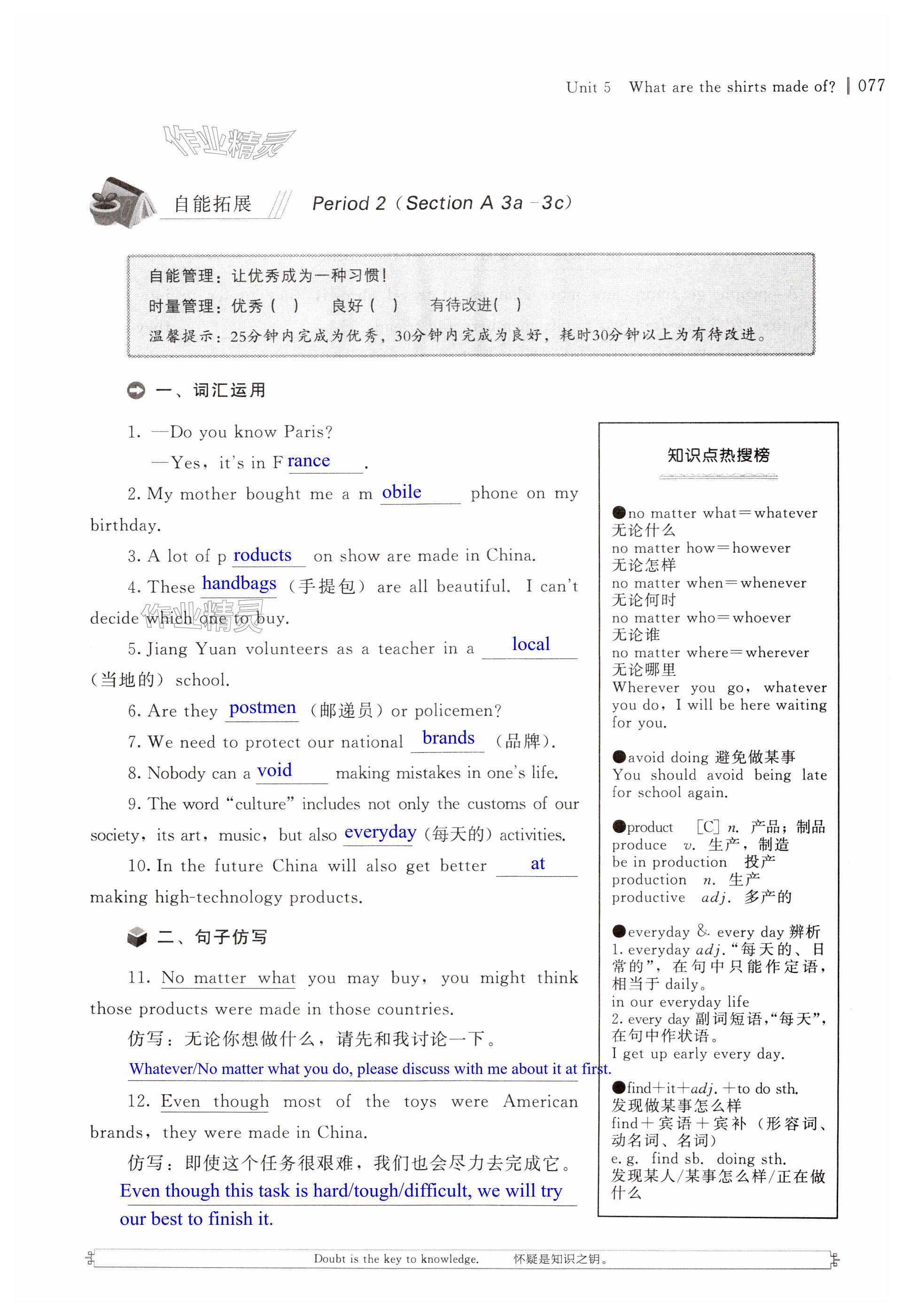 注:目前有些书本章节名称可能整理的还不是很完善,但都是按照顺序排列的,请同学们按照顺序仔细查找。练习册 2024年自能导学九年级英语全一册人教版 答案主要是用来给同学们做完题方便对答案用的,请勿直接抄袭。