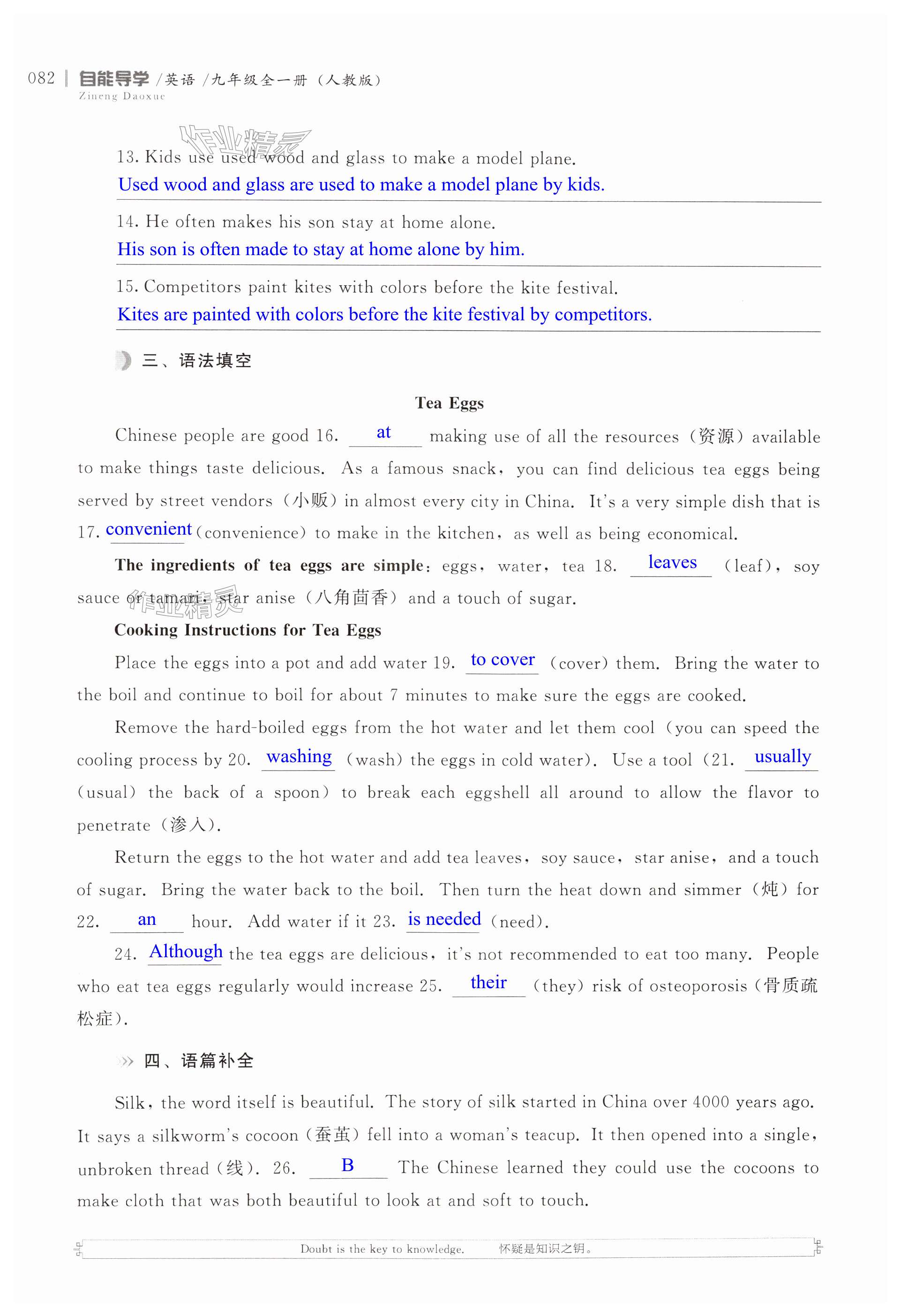 注:目前有些书本章节名称可能整理的还不是很完善,但都是按照顺序排列的,请同学们按照顺序仔细查找。练习册 2024年自能导学九年级英语全一册人教版 答案主要是用来给同学们做完题方便对答案用的,请勿直接抄袭。