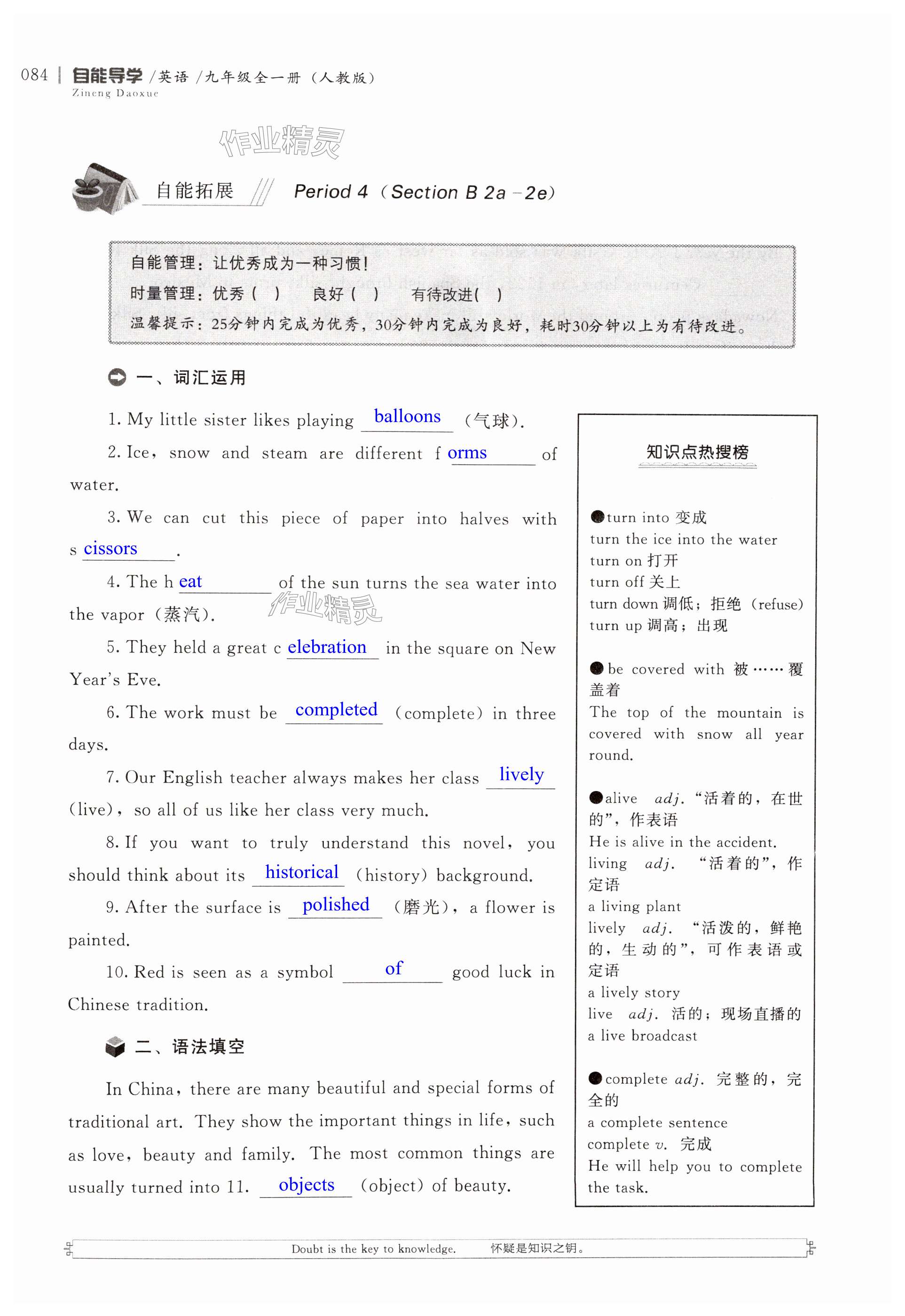 注:目前有些书本章节名称可能整理的还不是很完善,但都是按照顺序排列的,请同学们按照顺序仔细查找。练习册 2024年自能导学九年级英语全一册人教版 答案主要是用来给同学们做完题方便对答案用的,请勿直接抄袭。
