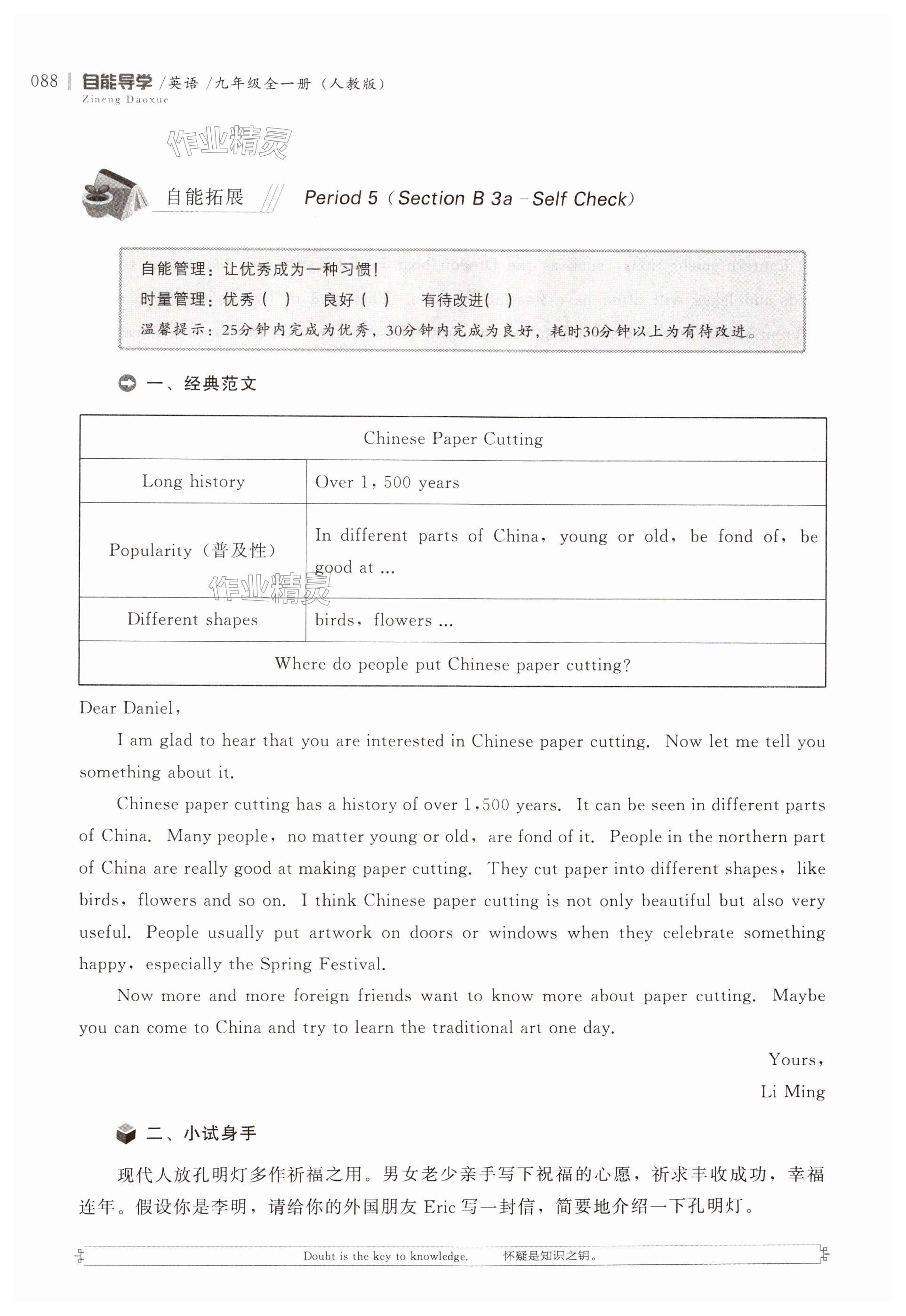 注:目前有些书本章节名称可能整理的还不是很完善,但都是按照顺序排列的,请同学们按照顺序仔细查找。练习册 2024年自能导学九年级英语全一册人教版 答案主要是用来给同学们做完题方便对答案用的,请勿直接抄袭。