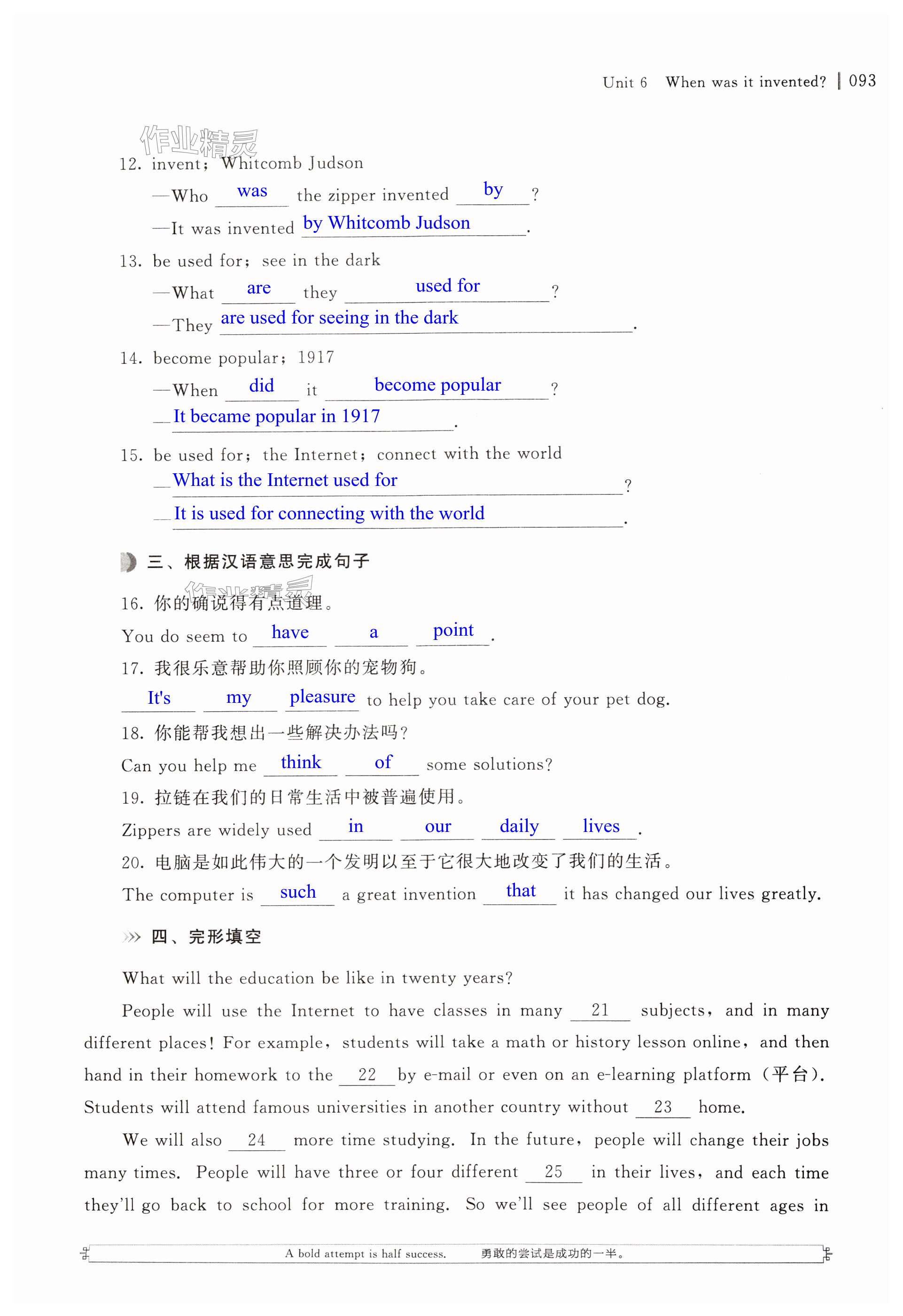 注:目前有些书本章节名称可能整理的还不是很完善,但都是按照顺序排列的,请同学们按照顺序仔细查找。练习册 2024年自能导学九年级英语全一册人教版 答案主要是用来给同学们做完题方便对答案用的,请勿直接抄袭。