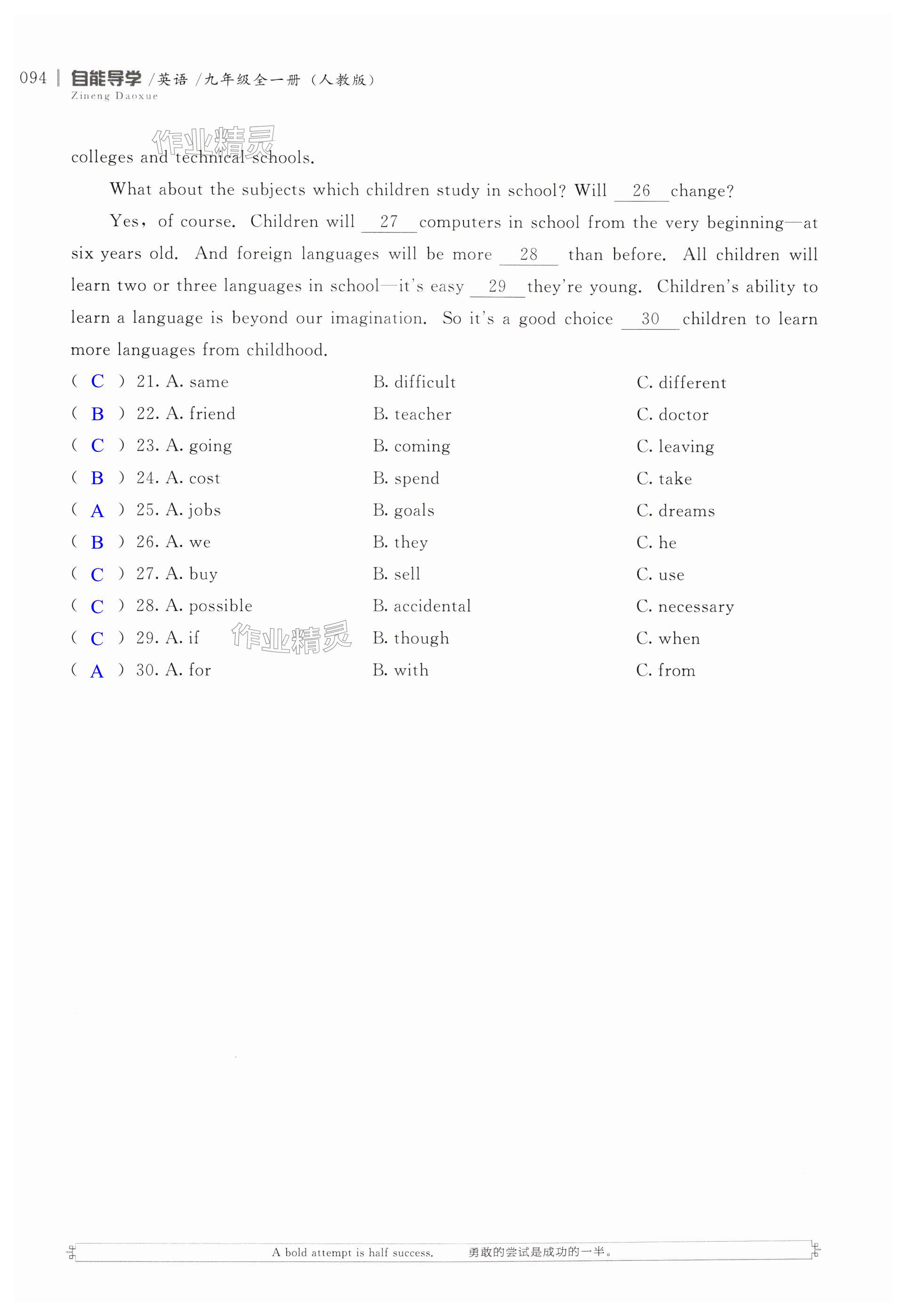 注:目前有些书本章节名称可能整理的还不是很完善,但都是按照顺序排列的,请同学们按照顺序仔细查找。练习册 2024年自能导学九年级英语全一册人教版 答案主要是用来给同学们做完题方便对答案用的,请勿直接抄袭。