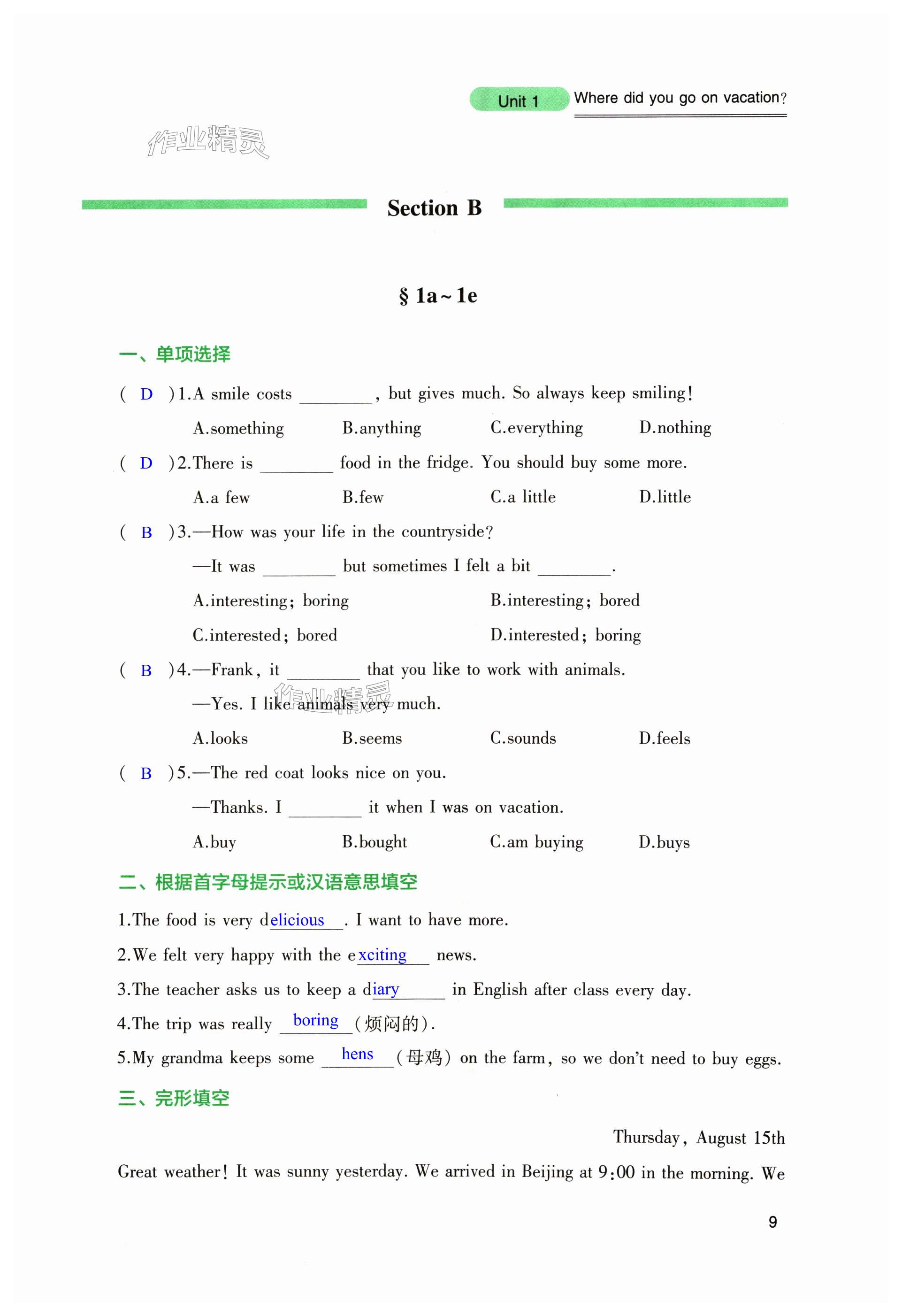 注:目前有些书本章节名称可能整理的还不是很完善,但都是按照顺序排列的,请同学们按照顺序仔细查找。练习册 2024年新课程实践与探究丛书八年级英语上册人教版 答案主要是用来给同学们做完题方便对答案用的,请勿直接抄袭。