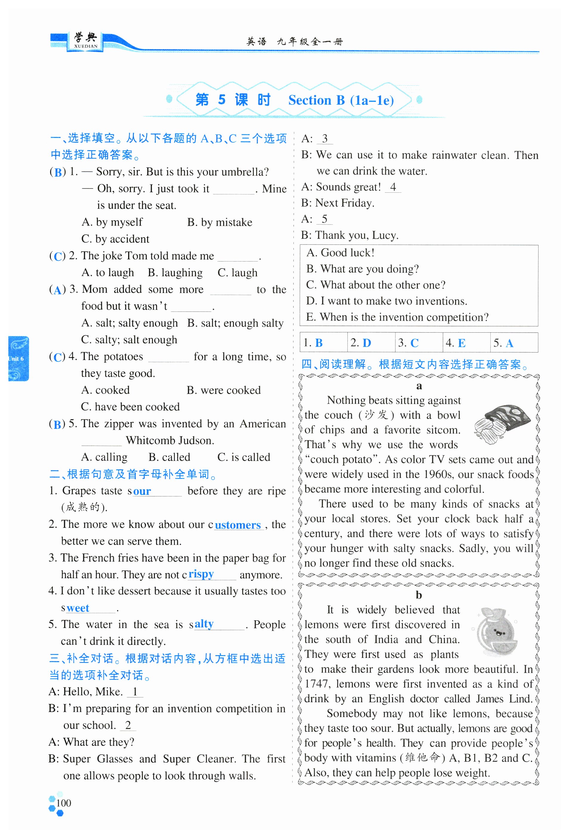 注:目前有些书本章节名称可能整理的还不是很完善,但都是按照顺序排列的,请同学们按照顺序仔细查找。练习册 2024年学典四川九年级英语全一册人教版成都专版 答案主要是用来给同学们做完题方便对答案用的,请勿直接抄袭。