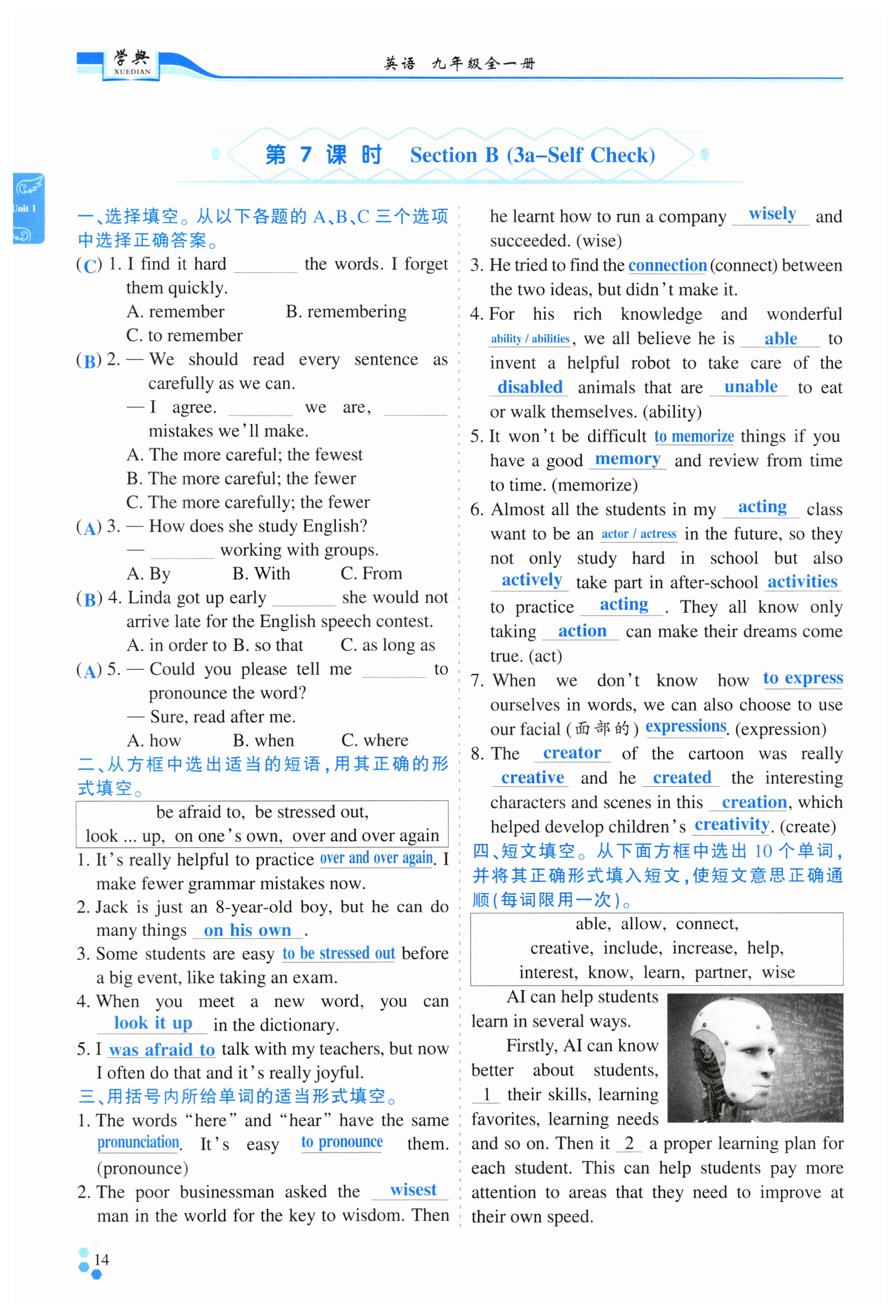 注:目前有些书本章节名称可能整理的还不是很完善,但都是按照顺序排列的,请同学们按照顺序仔细查找。练习册 2024年学典四川九年级英语全一册人教版成都专版 答案主要是用来给同学们做完题方便对答案用的,请勿直接抄袭。