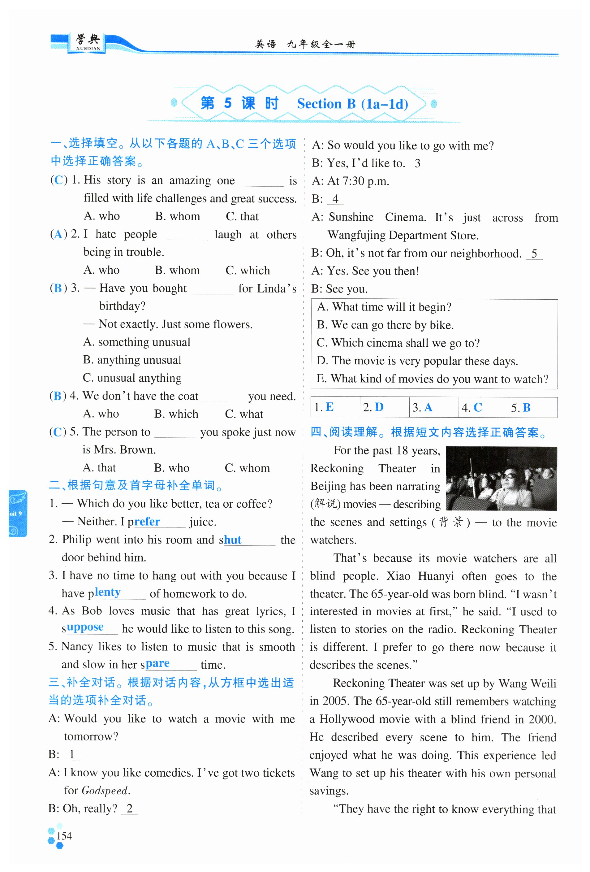 注:目前有些书本章节名称可能整理的还不是很完善,但都是按照顺序排列的,请同学们按照顺序仔细查找。练习册 2024年学典四川九年级英语全一册人教版成都专版 答案主要是用来给同学们做完题方便对答案用的,请勿直接抄袭。