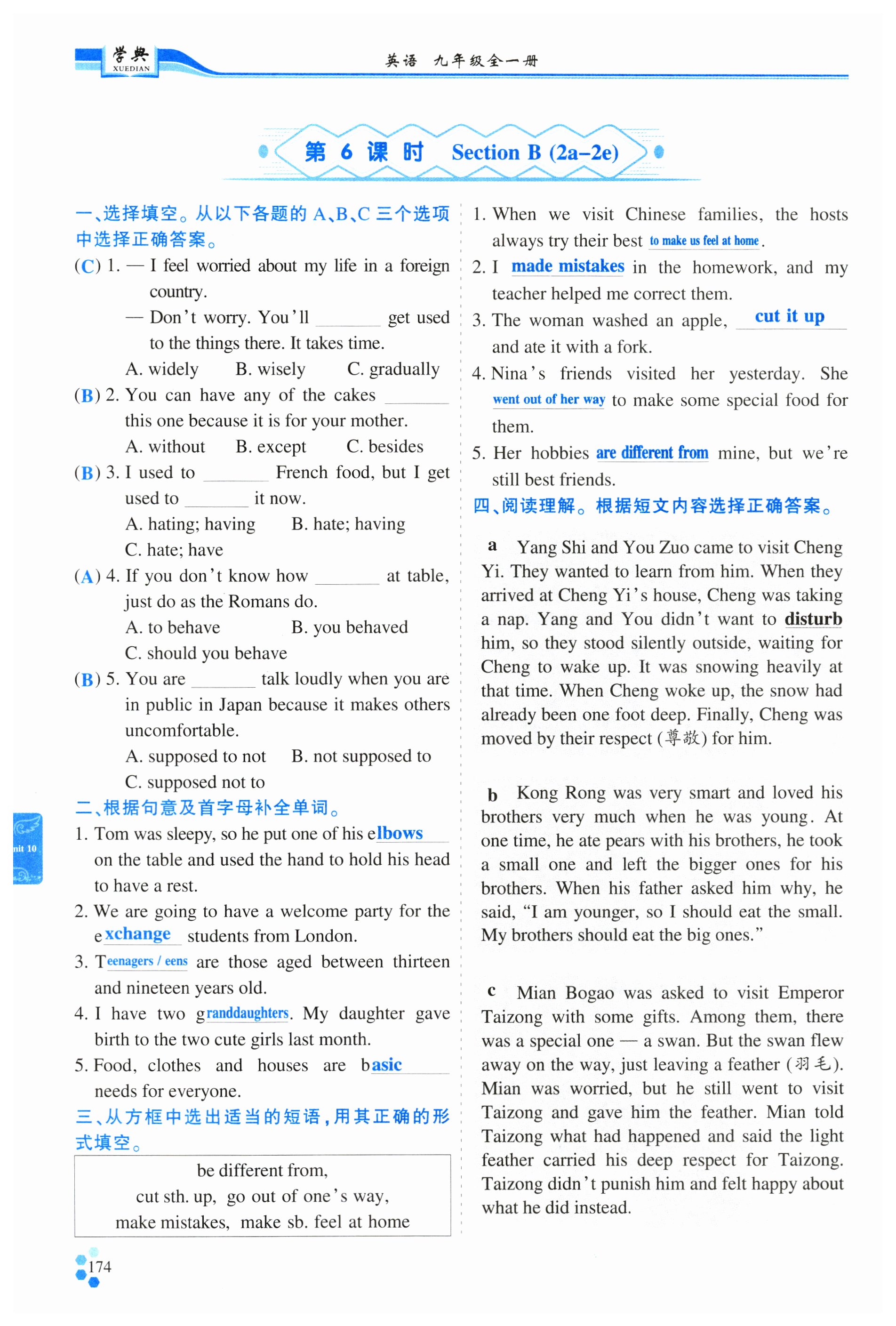 注:目前有些书本章节名称可能整理的还不是很完善,但都是按照顺序排列的,请同学们按照顺序仔细查找。练习册 2024年学典四川九年级英语全一册人教版成都专版 答案主要是用来给同学们做完题方便对答案用的,请勿直接抄袭。