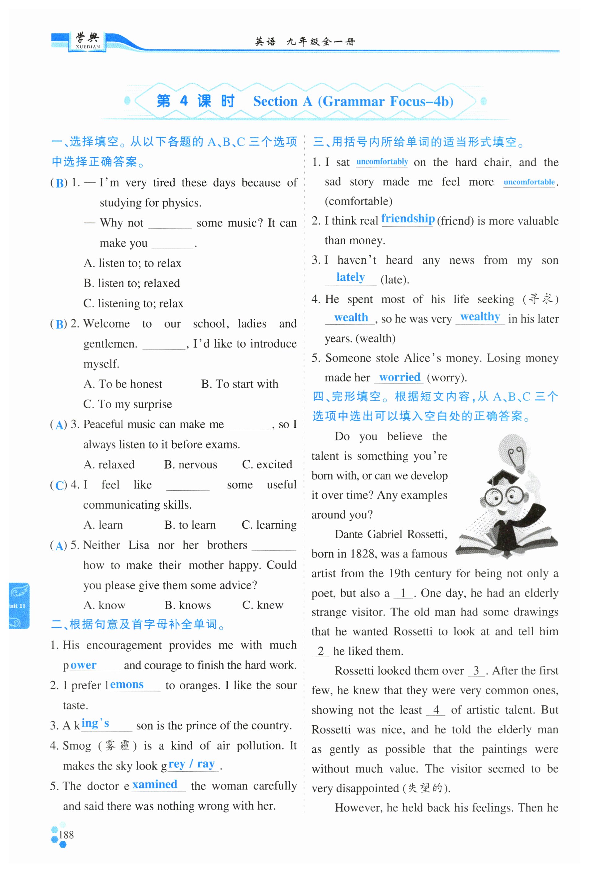 注:目前有些书本章节名称可能整理的还不是很完善,但都是按照顺序排列的,请同学们按照顺序仔细查找。练习册 2024年学典四川九年级英语全一册人教版成都专版 答案主要是用来给同学们做完题方便对答案用的,请勿直接抄袭。