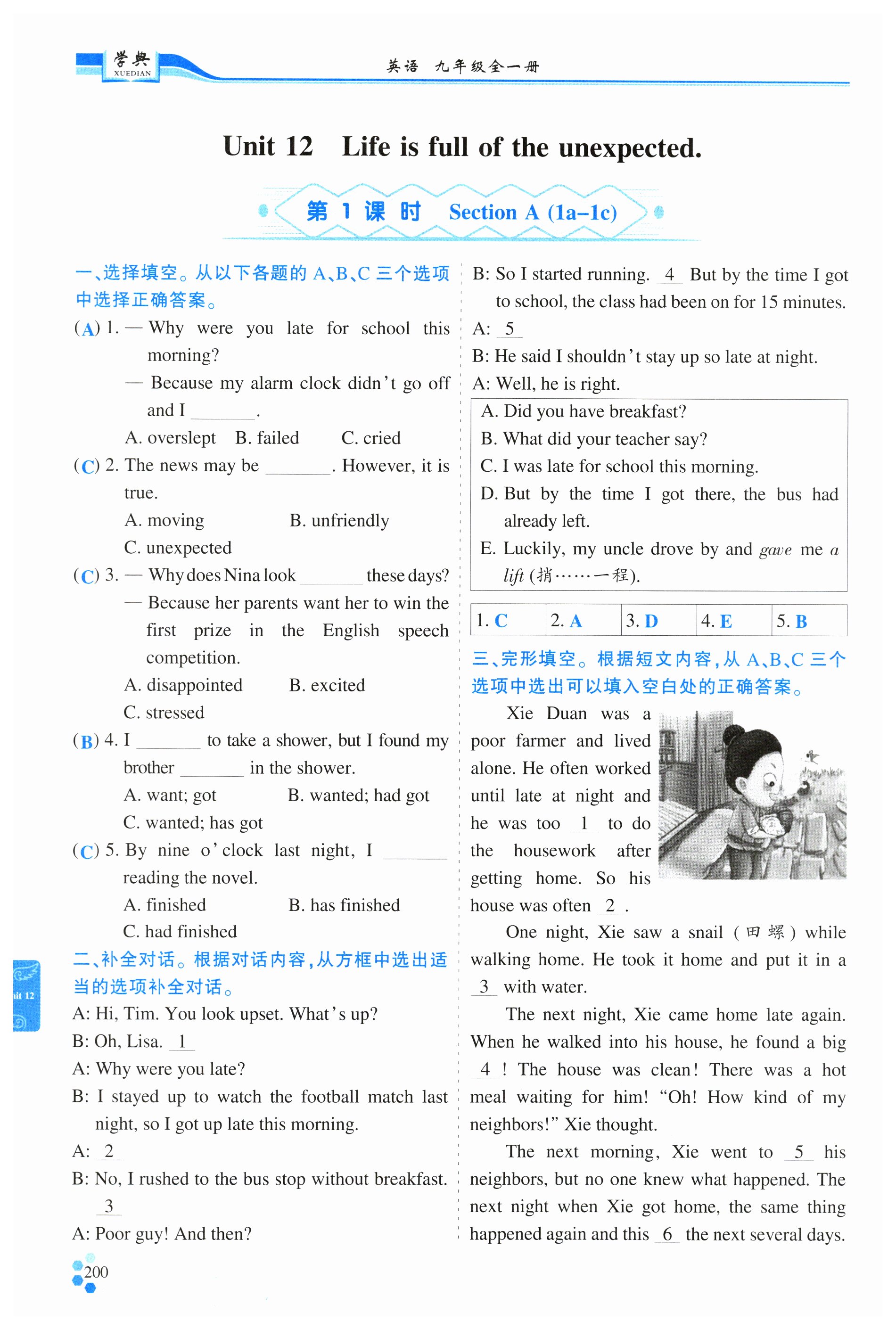 注:目前有些书本章节名称可能整理的还不是很完善,但都是按照顺序排列的,请同学们按照顺序仔细查找。练习册 2024年学典四川九年级英语全一册人教版成都专版 答案主要是用来给同学们做完题方便对答案用的,请勿直接抄袭。