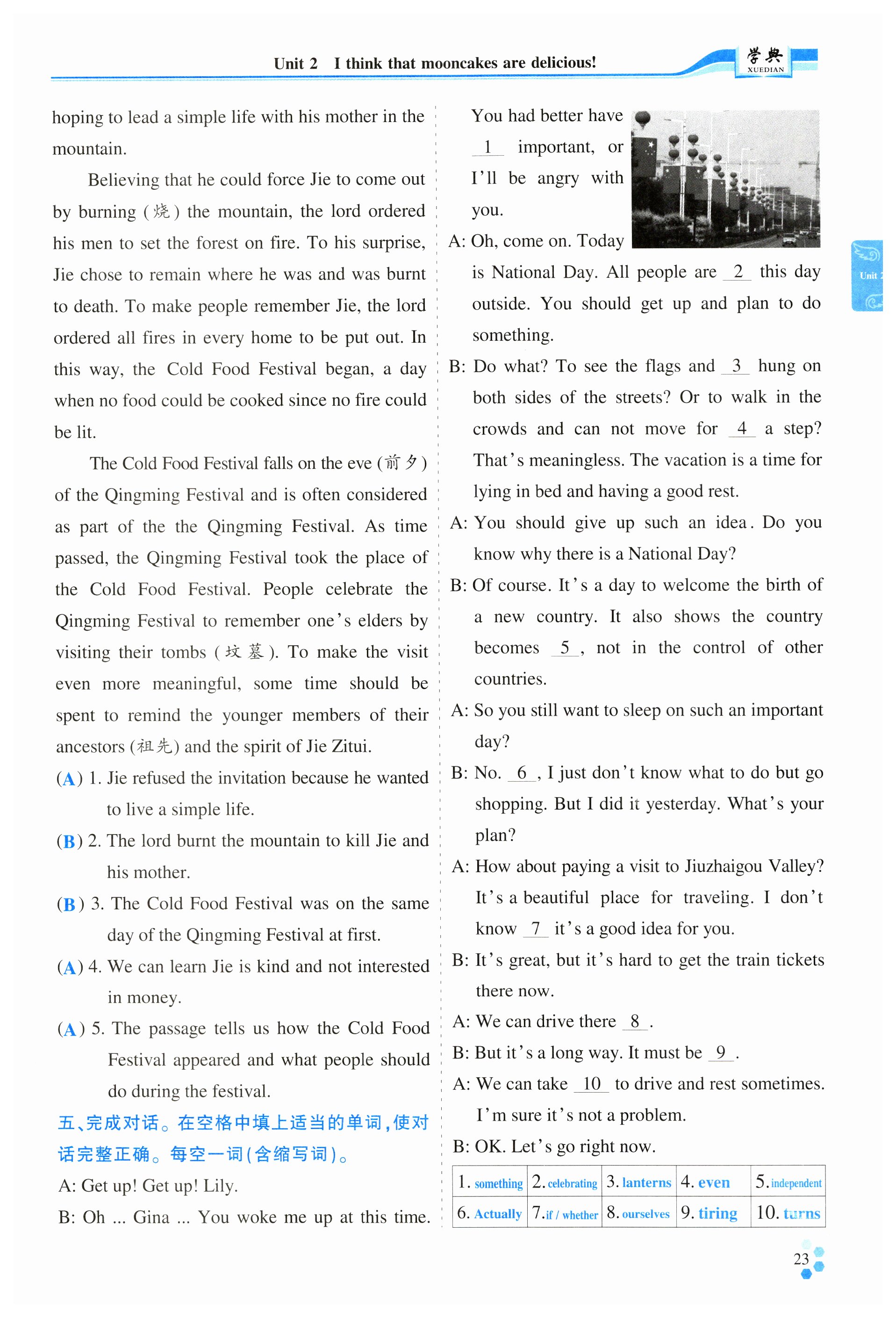 注:目前有些书本章节名称可能整理的还不是很完善,但都是按照顺序排列的,请同学们按照顺序仔细查找。练习册 2024年学典四川九年级英语全一册人教版成都专版 答案主要是用来给同学们做完题方便对答案用的,请勿直接抄袭。