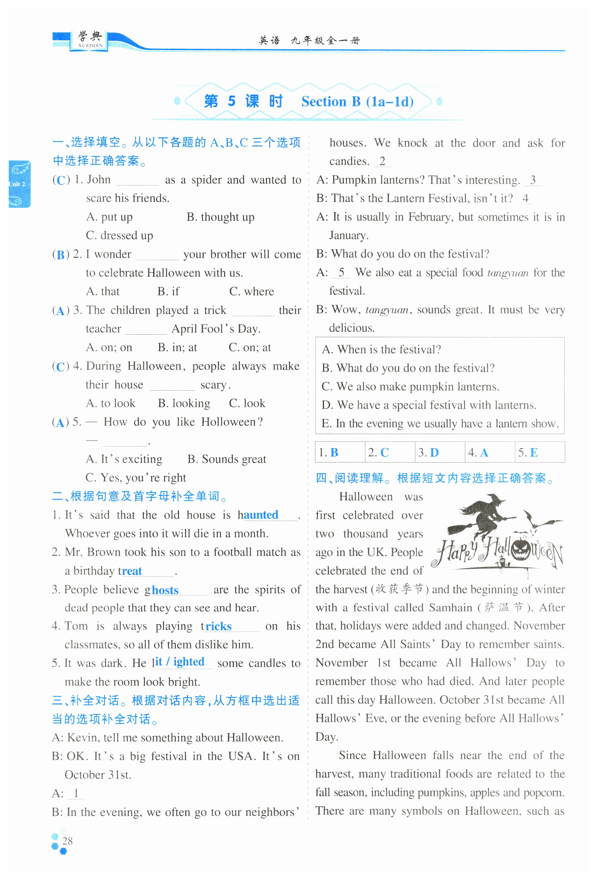 注:目前有些书本章节名称可能整理的还不是很完善,但都是按照顺序排列的,请同学们按照顺序仔细查找。练习册 2024年学典四川九年级英语全一册人教版成都专版 答案主要是用来给同学们做完题方便对答案用的,请勿直接抄袭。