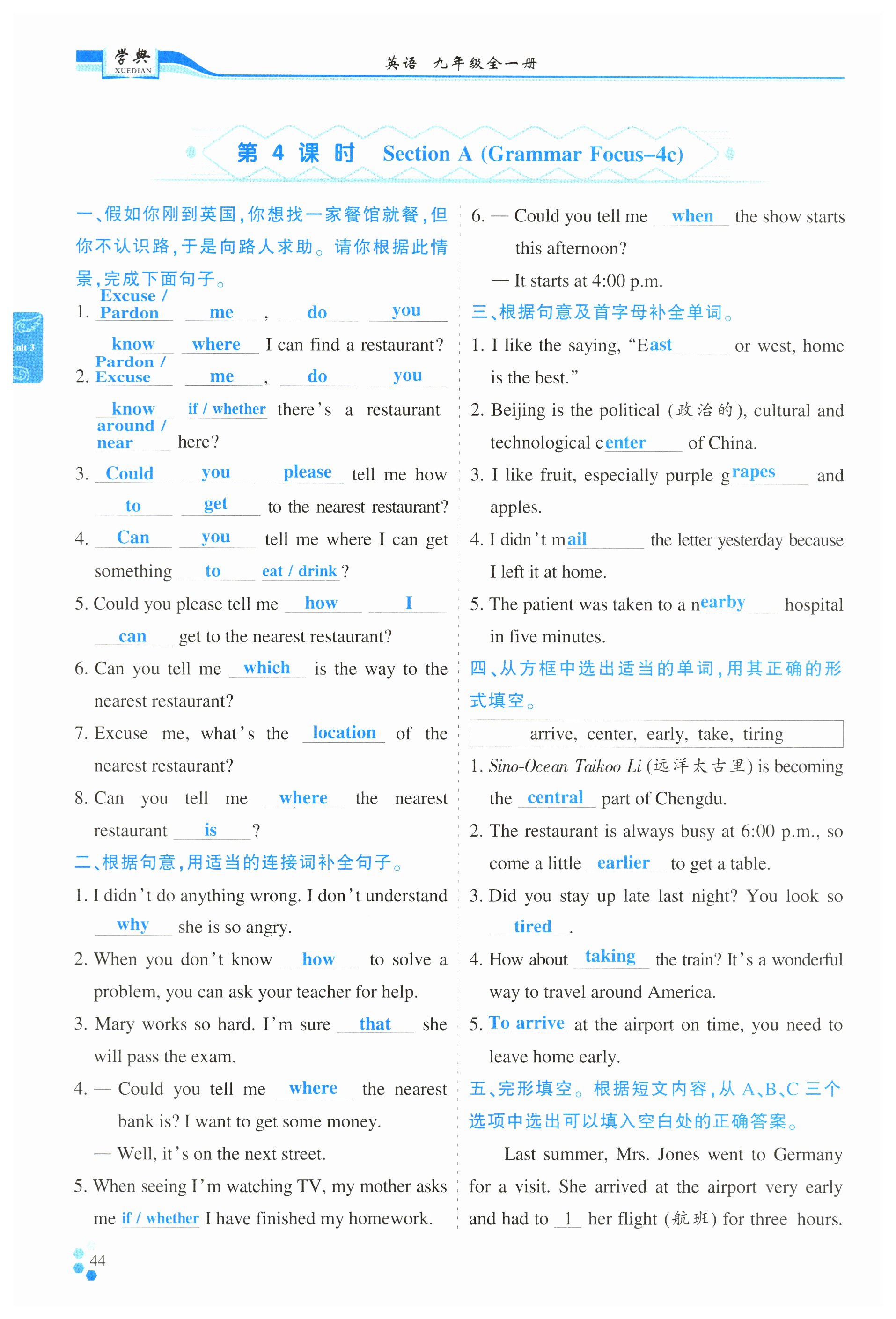 注:目前有些书本章节名称可能整理的还不是很完善,但都是按照顺序排列的,请同学们按照顺序仔细查找。练习册 2024年学典四川九年级英语全一册人教版成都专版 答案主要是用来给同学们做完题方便对答案用的,请勿直接抄袭。