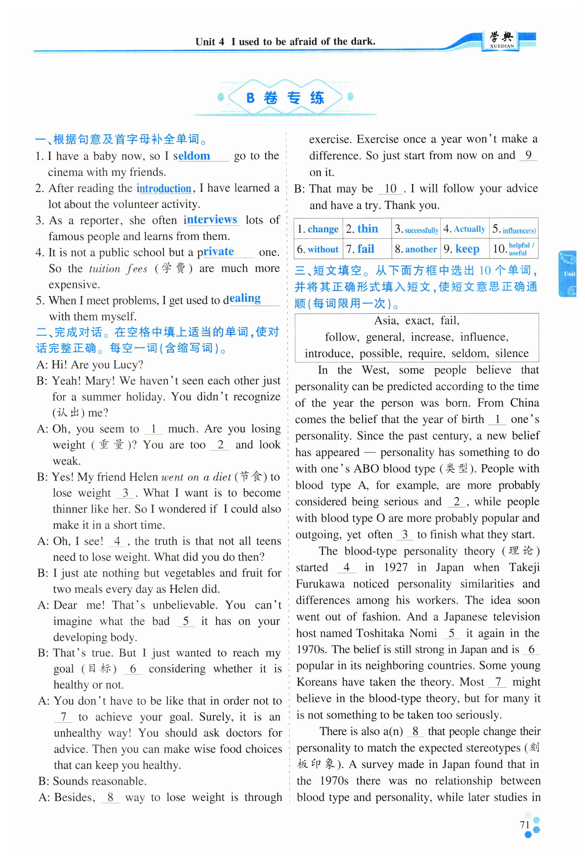 注:目前有些书本章节名称可能整理的还不是很完善,但都是按照顺序排列的,请同学们按照顺序仔细查找。练习册 2024年学典四川九年级英语全一册人教版成都专版 答案主要是用来给同学们做完题方便对答案用的,请勿直接抄袭。