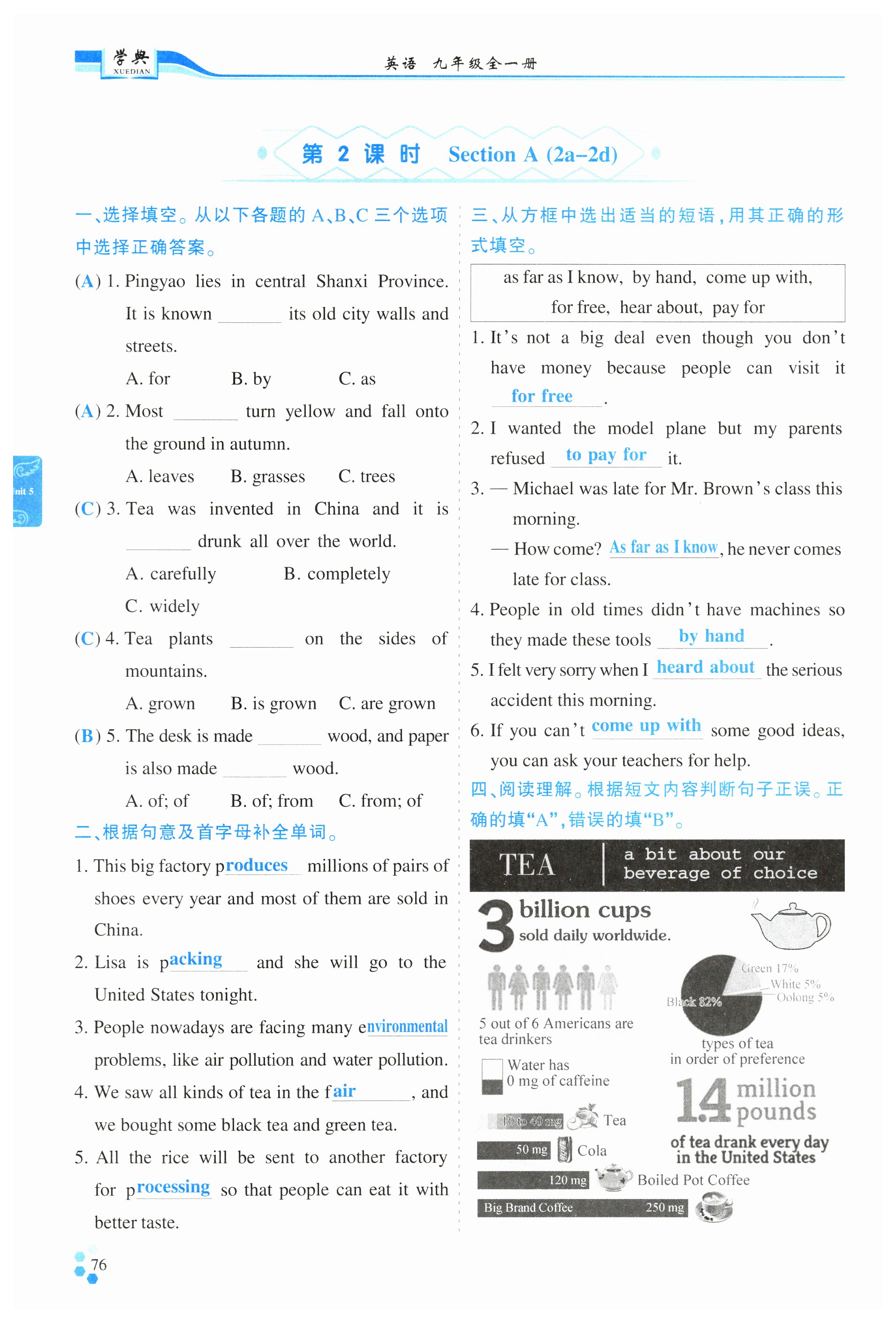 注:目前有些书本章节名称可能整理的还不是很完善,但都是按照顺序排列的,请同学们按照顺序仔细查找。练习册 2024年学典四川九年级英语全一册人教版成都专版 答案主要是用来给同学们做完题方便对答案用的,请勿直接抄袭。