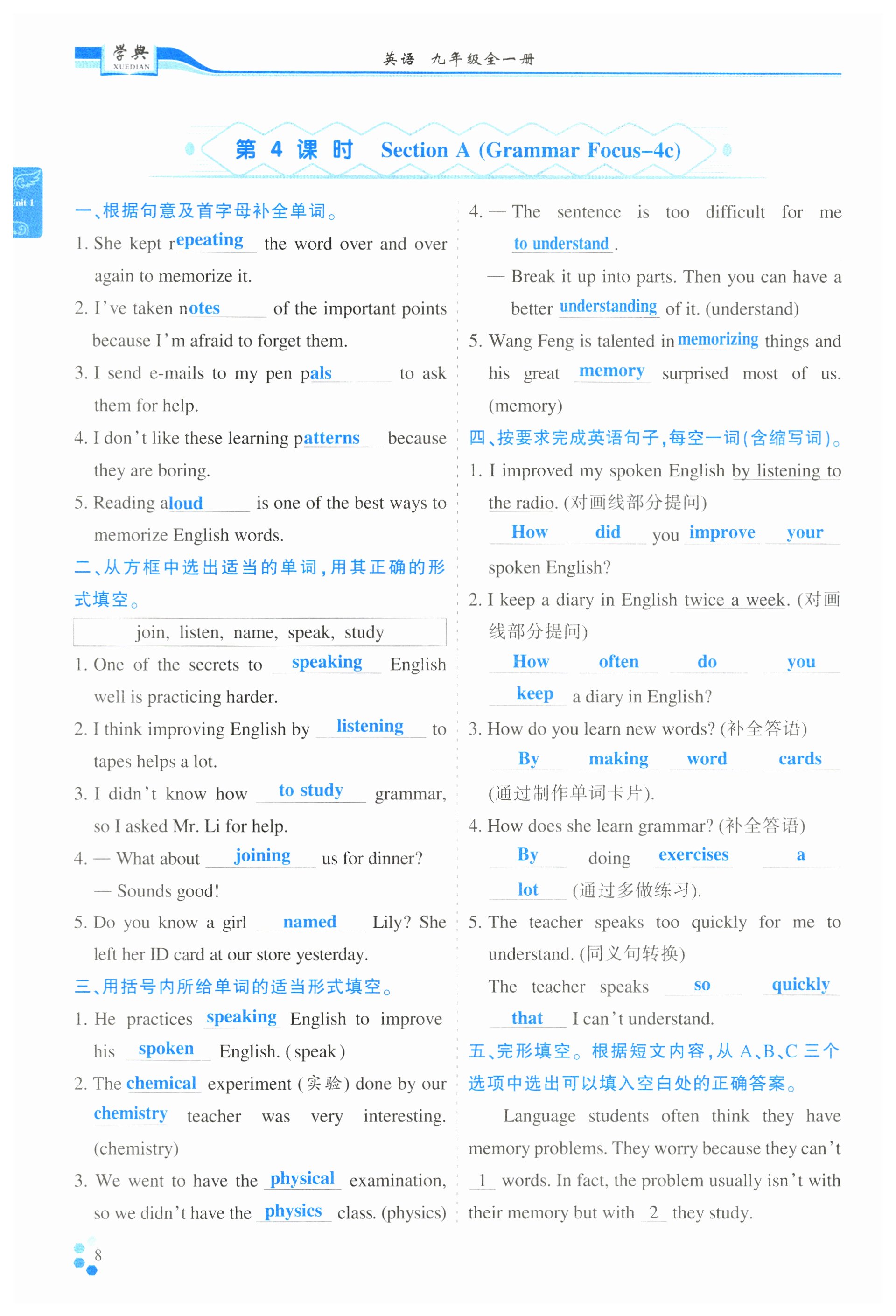 注:目前有些书本章节名称可能整理的还不是很完善,但都是按照顺序排列的,请同学们按照顺序仔细查找。练习册 2024年学典四川九年级英语全一册人教版成都专版 答案主要是用来给同学们做完题方便对答案用的,请勿直接抄袭。