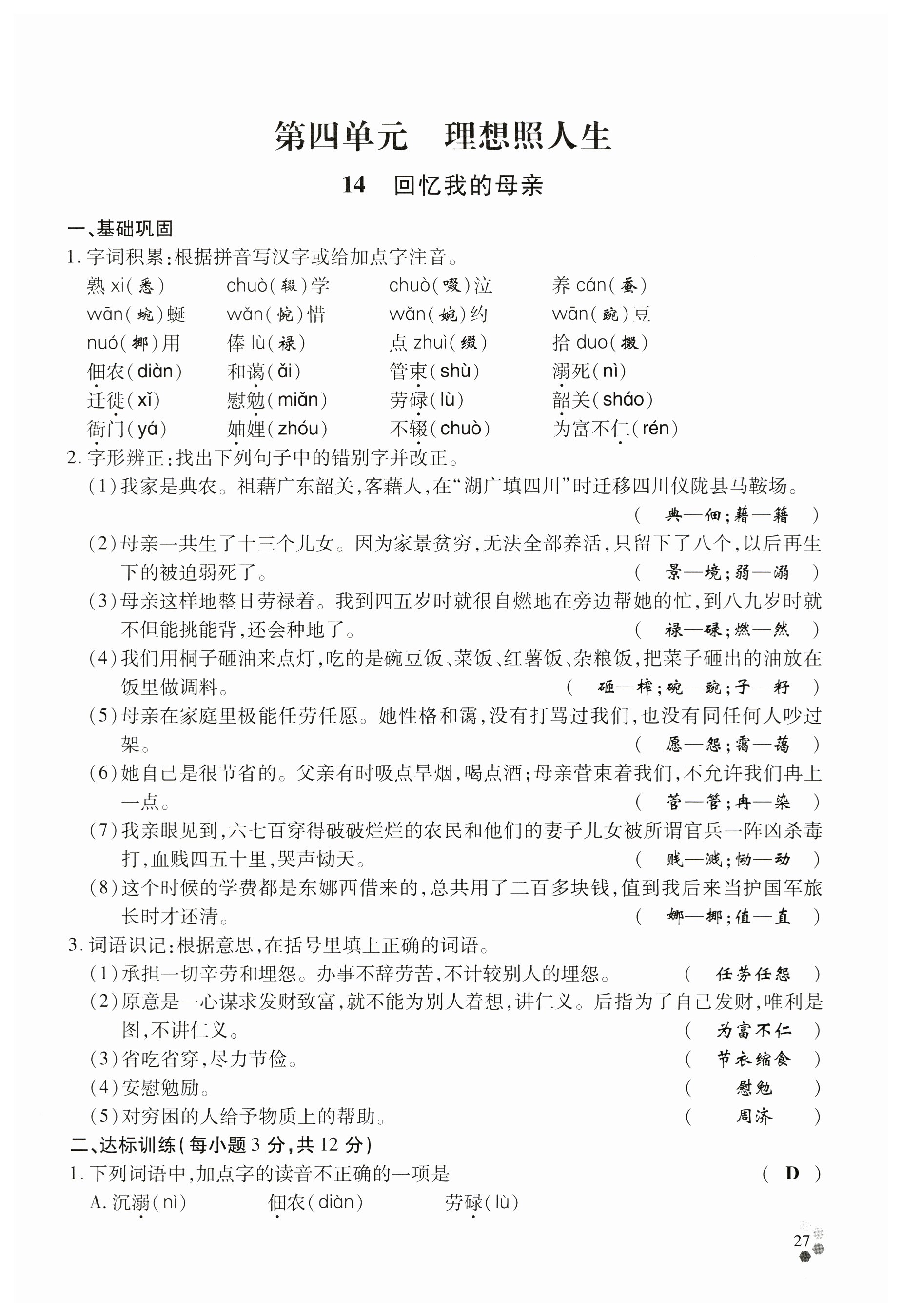 注:目前有些书本章节名称可能整理的还不是很完善,但都是按照顺序排列的,请同学们按照顺序仔细查找。练习册 2024年学典北京时代华文书局七年级语文上册人教版 答案主要是用来给同学们做完题方便对答案用的,请勿直接抄袭。