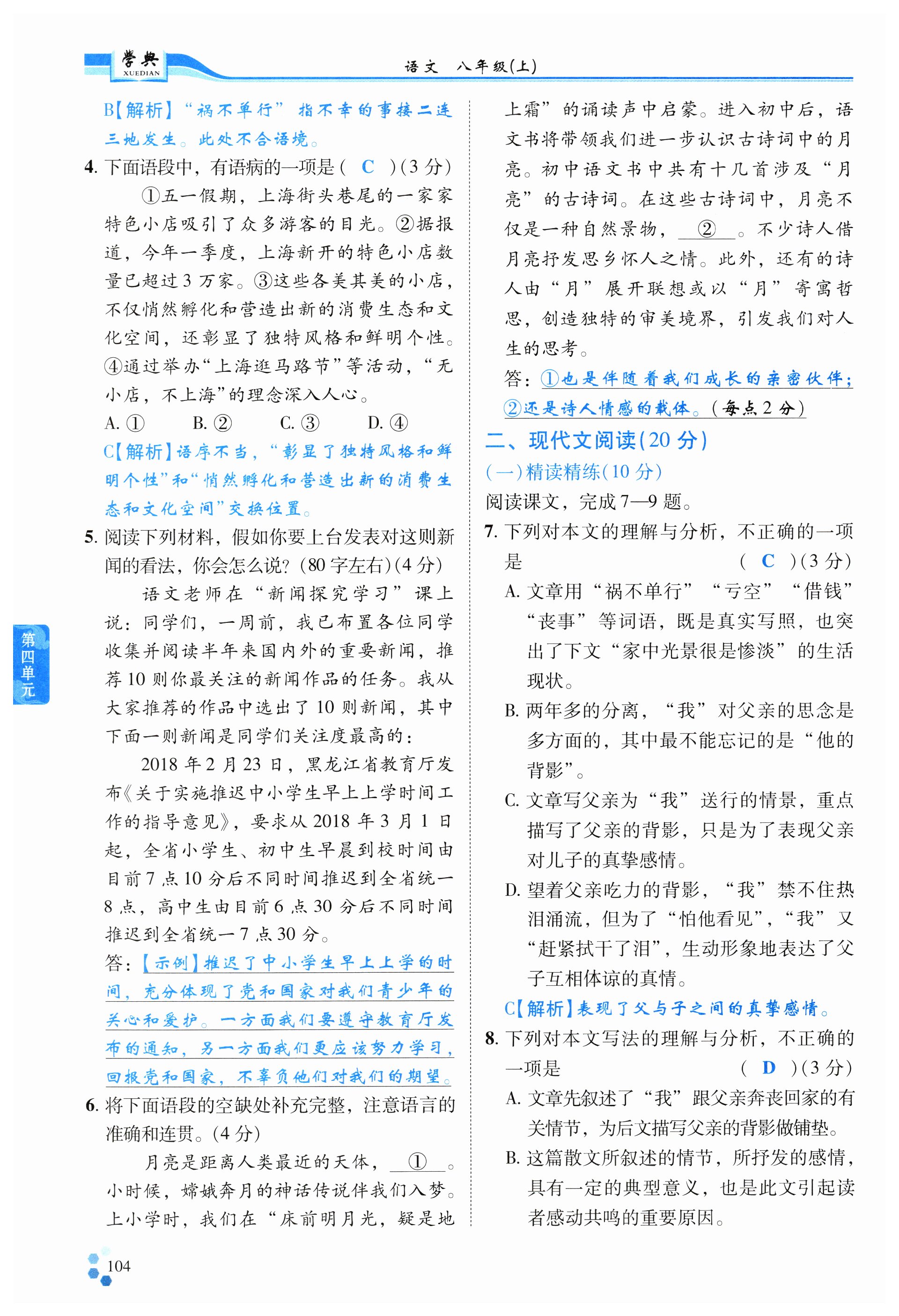 注:目前有些书本章节名称可能整理的还不是很完善,但都是按照顺序排列的,请同学们按照顺序仔细查找。练习册 2024年学典四川八年级语文上册人教版 答案主要是用来给同学们做完题方便对答案用的,请勿直接抄袭。