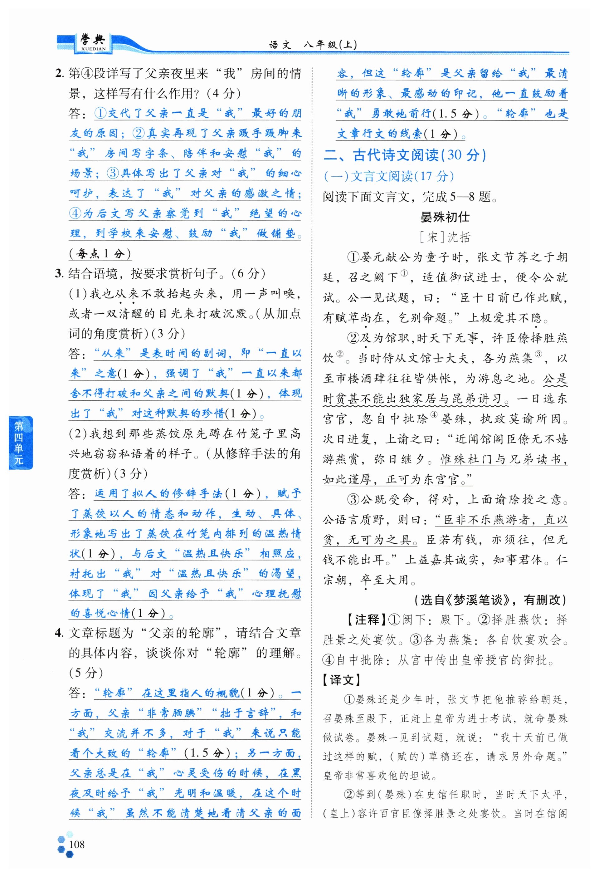 注:目前有些书本章节名称可能整理的还不是很完善,但都是按照顺序排列的,请同学们按照顺序仔细查找。练习册 2024年学典四川八年级语文上册人教版 答案主要是用来给同学们做完题方便对答案用的,请勿直接抄袭。