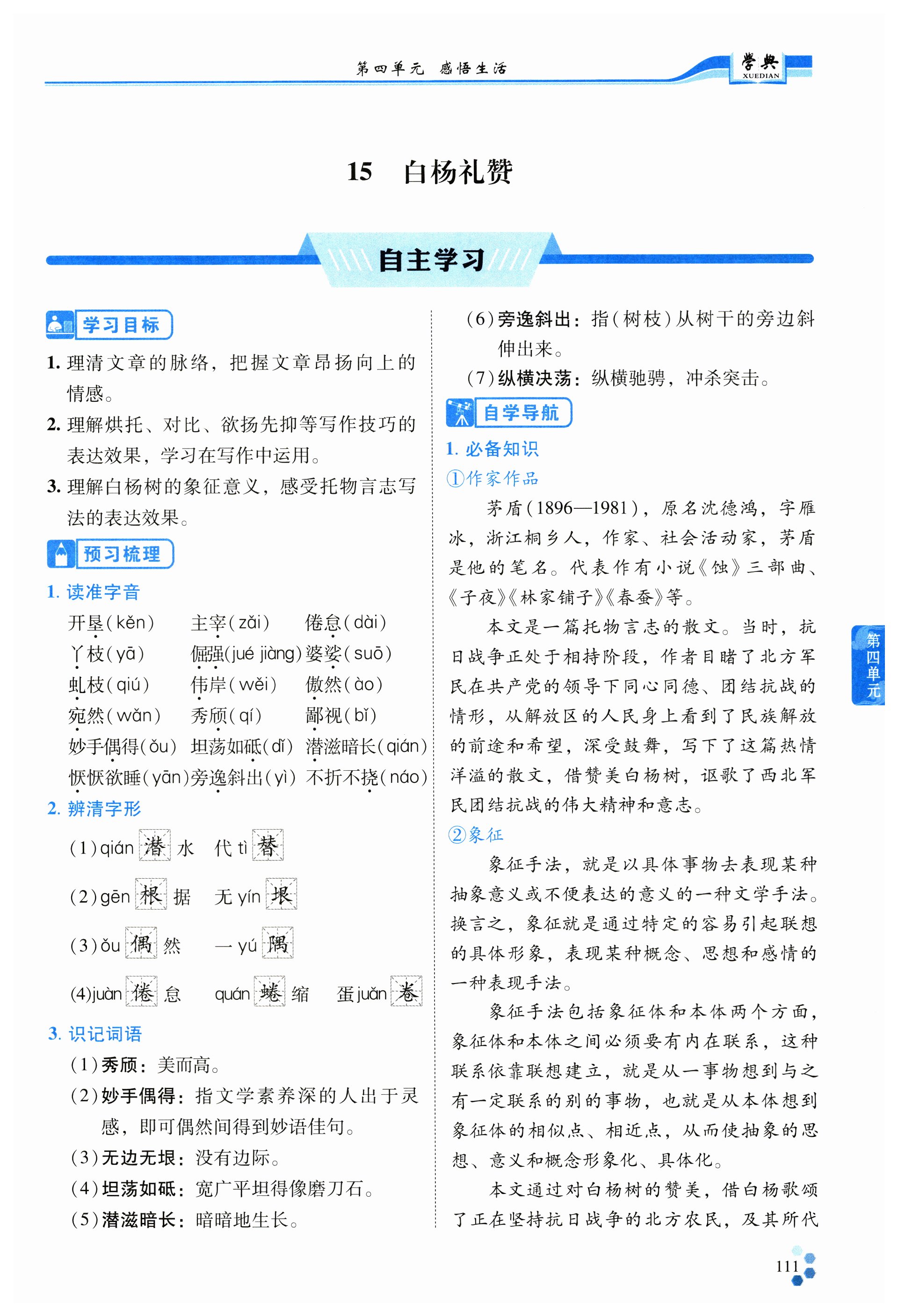 注:目前有些书本章节名称可能整理的还不是很完善,但都是按照顺序排列的,请同学们按照顺序仔细查找。练习册 2024年学典四川八年级语文上册人教版 答案主要是用来给同学们做完题方便对答案用的,请勿直接抄袭。