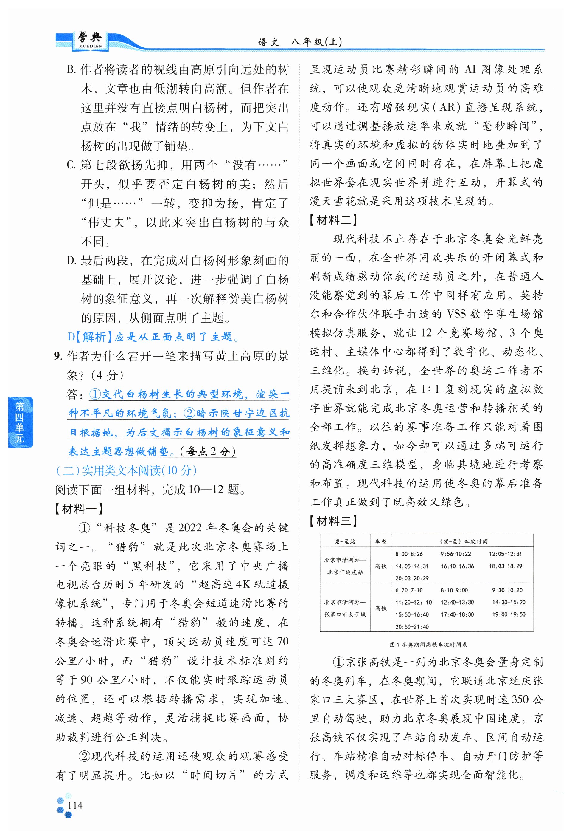 注:目前有些书本章节名称可能整理的还不是很完善,但都是按照顺序排列的,请同学们按照顺序仔细查找。练习册 2024年学典四川八年级语文上册人教版 答案主要是用来给同学们做完题方便对答案用的,请勿直接抄袭。