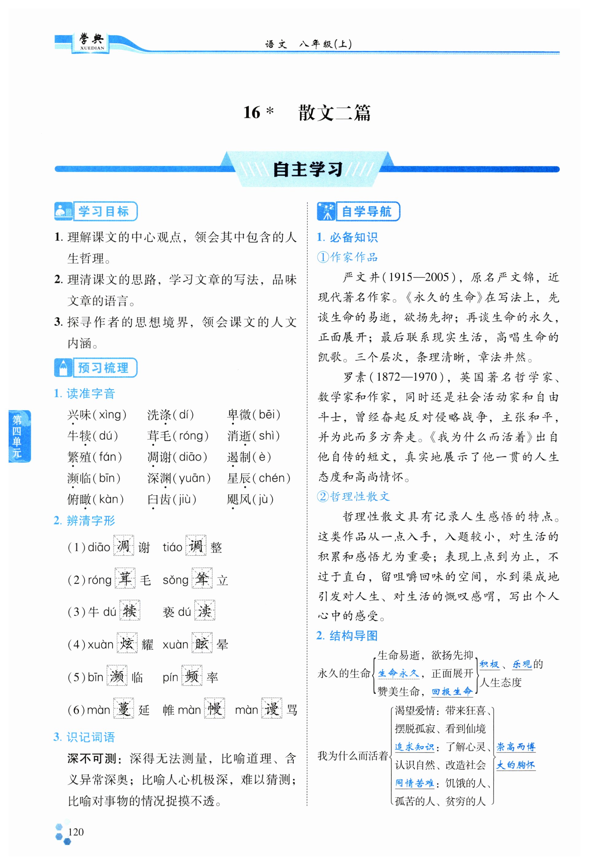 注:目前有些书本章节名称可能整理的还不是很完善,但都是按照顺序排列的,请同学们按照顺序仔细查找。练习册 2024年学典四川八年级语文上册人教版 答案主要是用来给同学们做完题方便对答案用的,请勿直接抄袭。