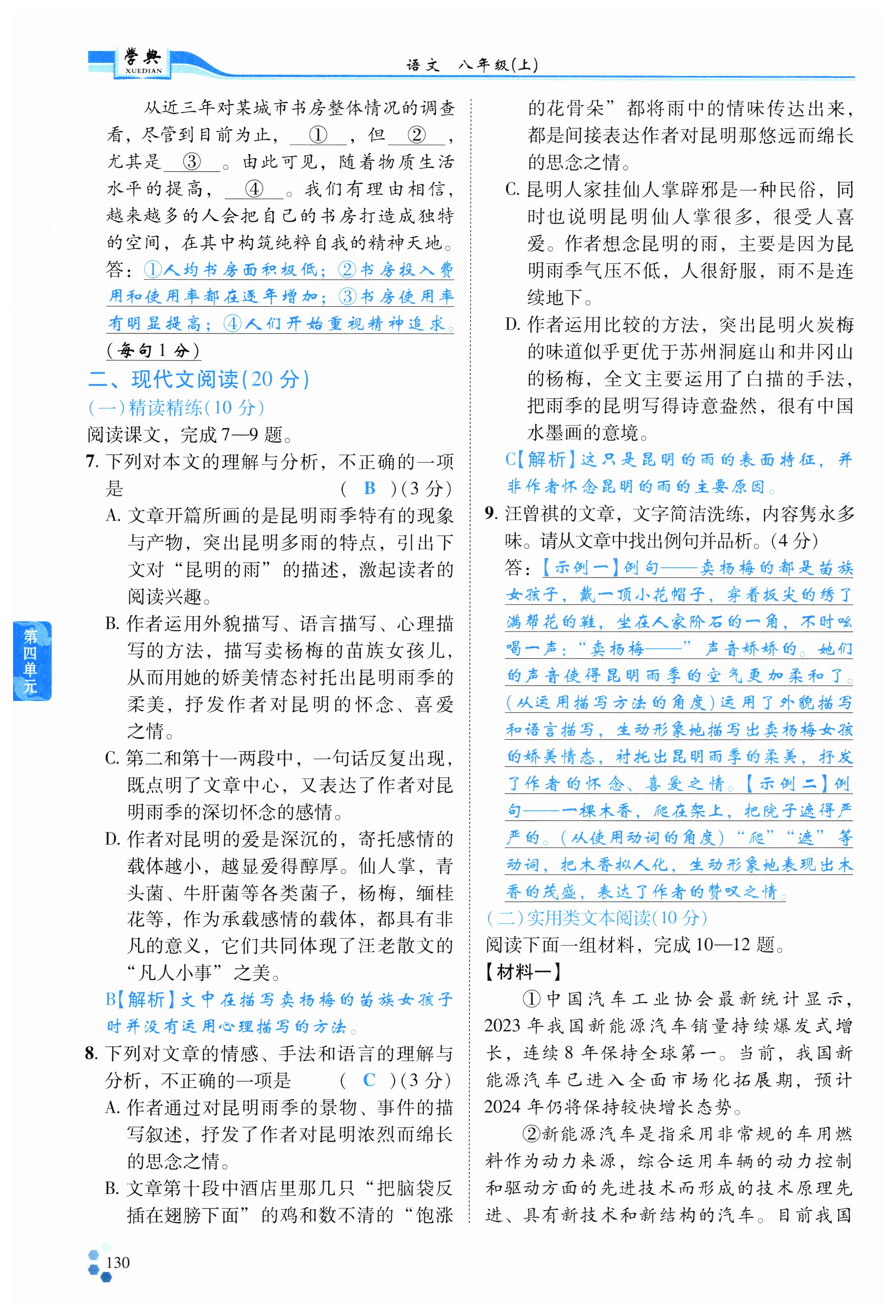 注:目前有些书本章节名称可能整理的还不是很完善,但都是按照顺序排列的,请同学们按照顺序仔细查找。练习册 2024年学典四川八年级语文上册人教版 答案主要是用来给同学们做完题方便对答案用的,请勿直接抄袭。