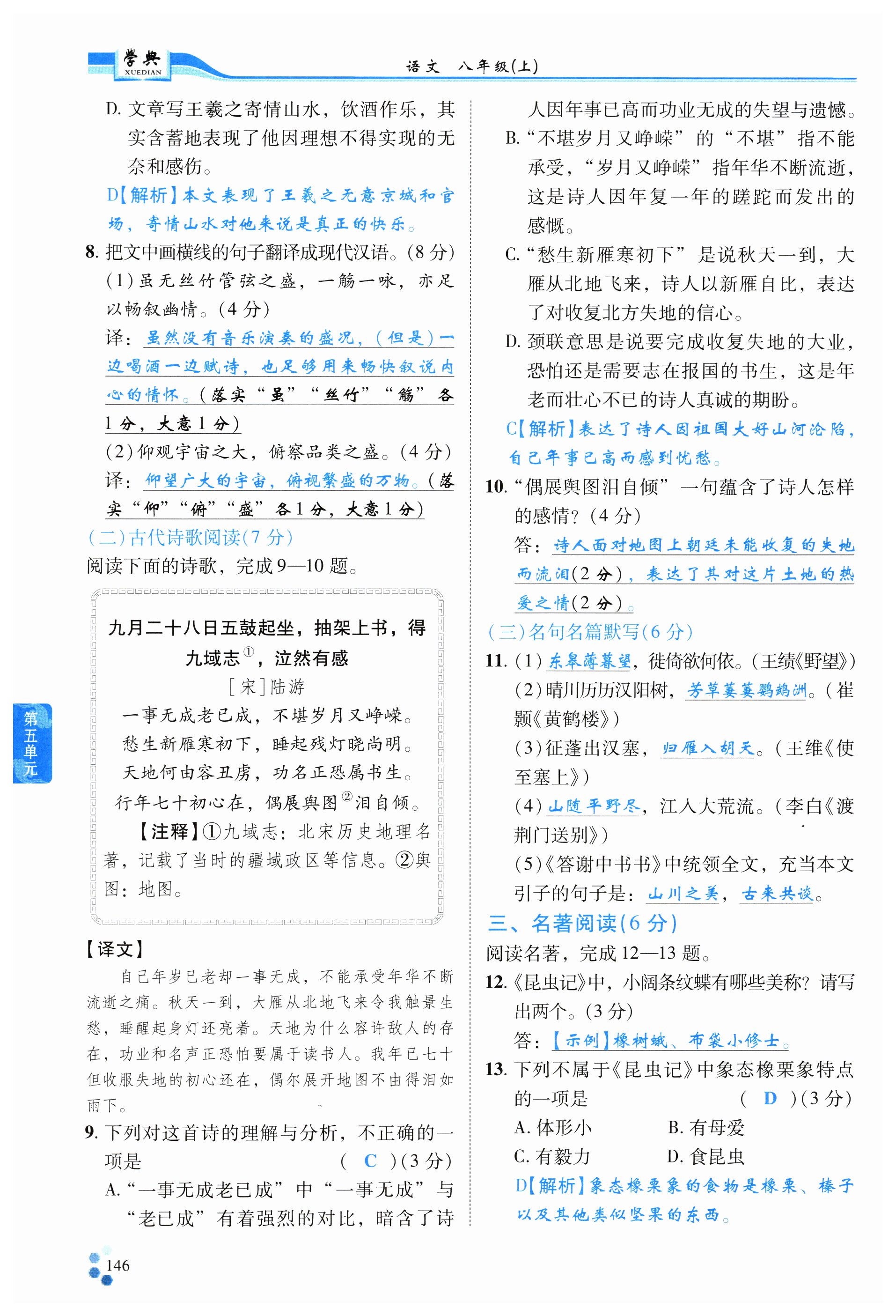 注:目前有些书本章节名称可能整理的还不是很完善,但都是按照顺序排列的,请同学们按照顺序仔细查找。练习册 2024年学典四川八年级语文上册人教版 答案主要是用来给同学们做完题方便对答案用的,请勿直接抄袭。