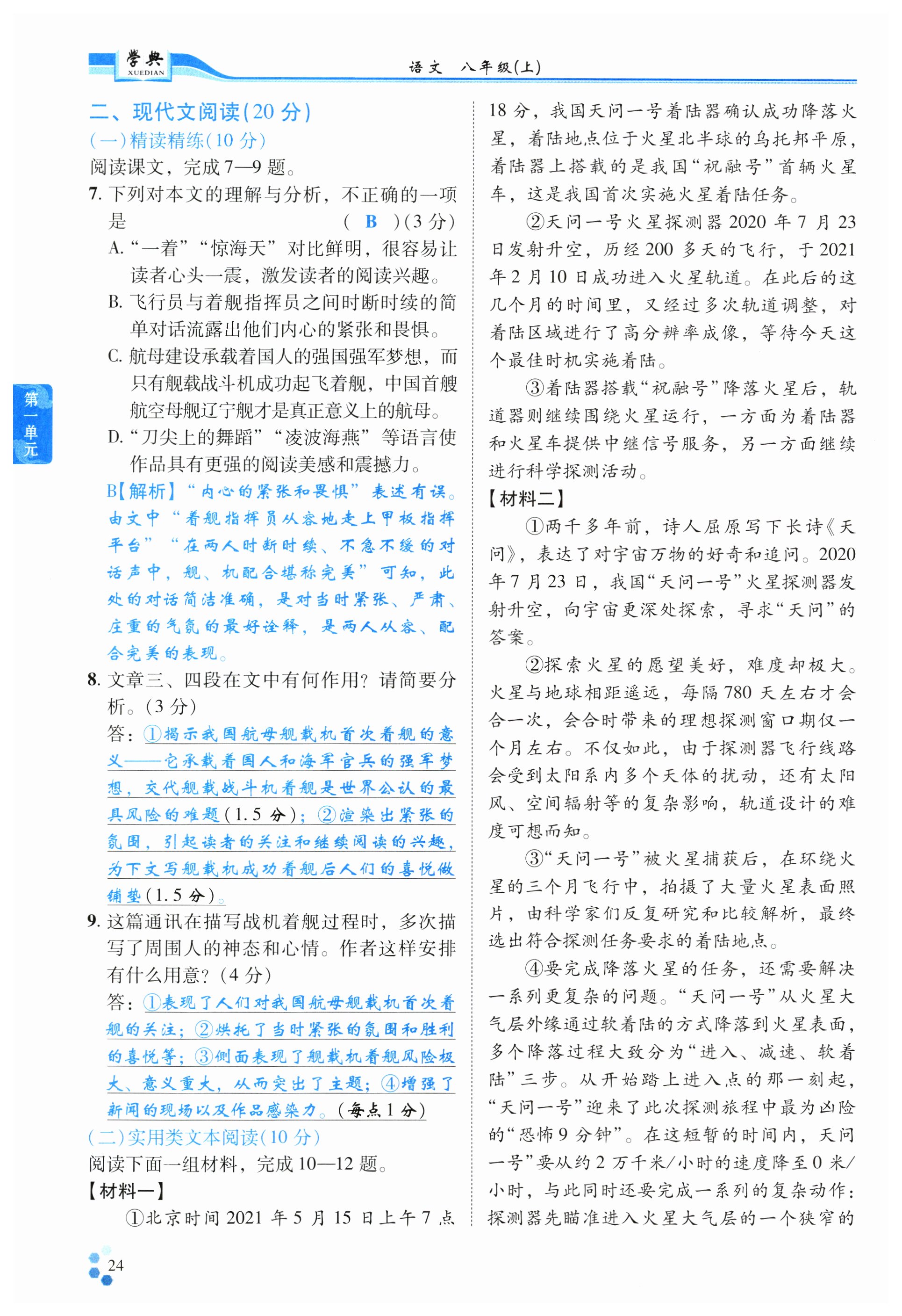 注:目前有些书本章节名称可能整理的还不是很完善,但都是按照顺序排列的,请同学们按照顺序仔细查找。练习册 2024年学典四川八年级语文上册人教版 答案主要是用来给同学们做完题方便对答案用的,请勿直接抄袭。