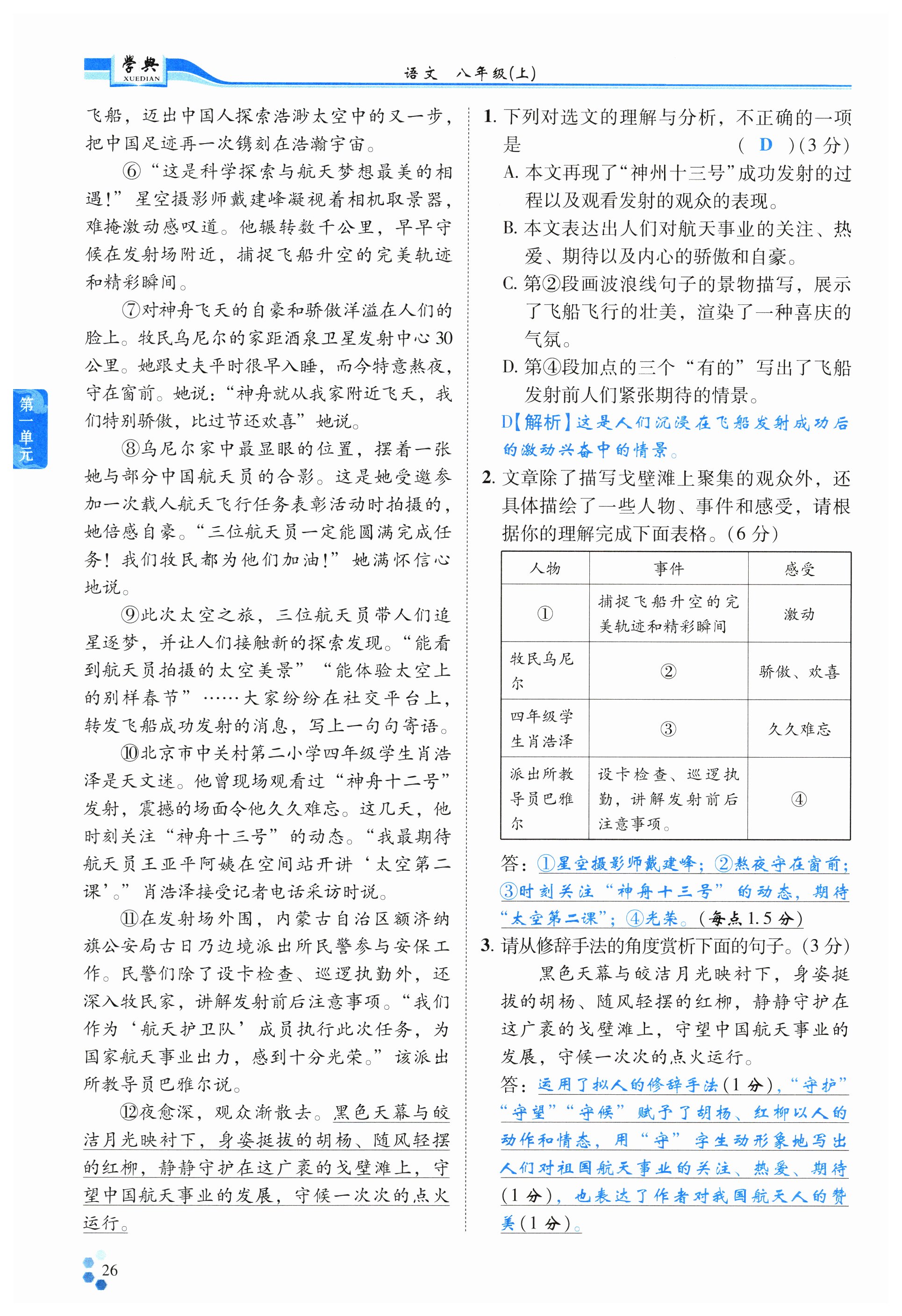 注:目前有些书本章节名称可能整理的还不是很完善,但都是按照顺序排列的,请同学们按照顺序仔细查找。练习册 2024年学典四川八年级语文上册人教版 答案主要是用来给同学们做完题方便对答案用的,请勿直接抄袭。