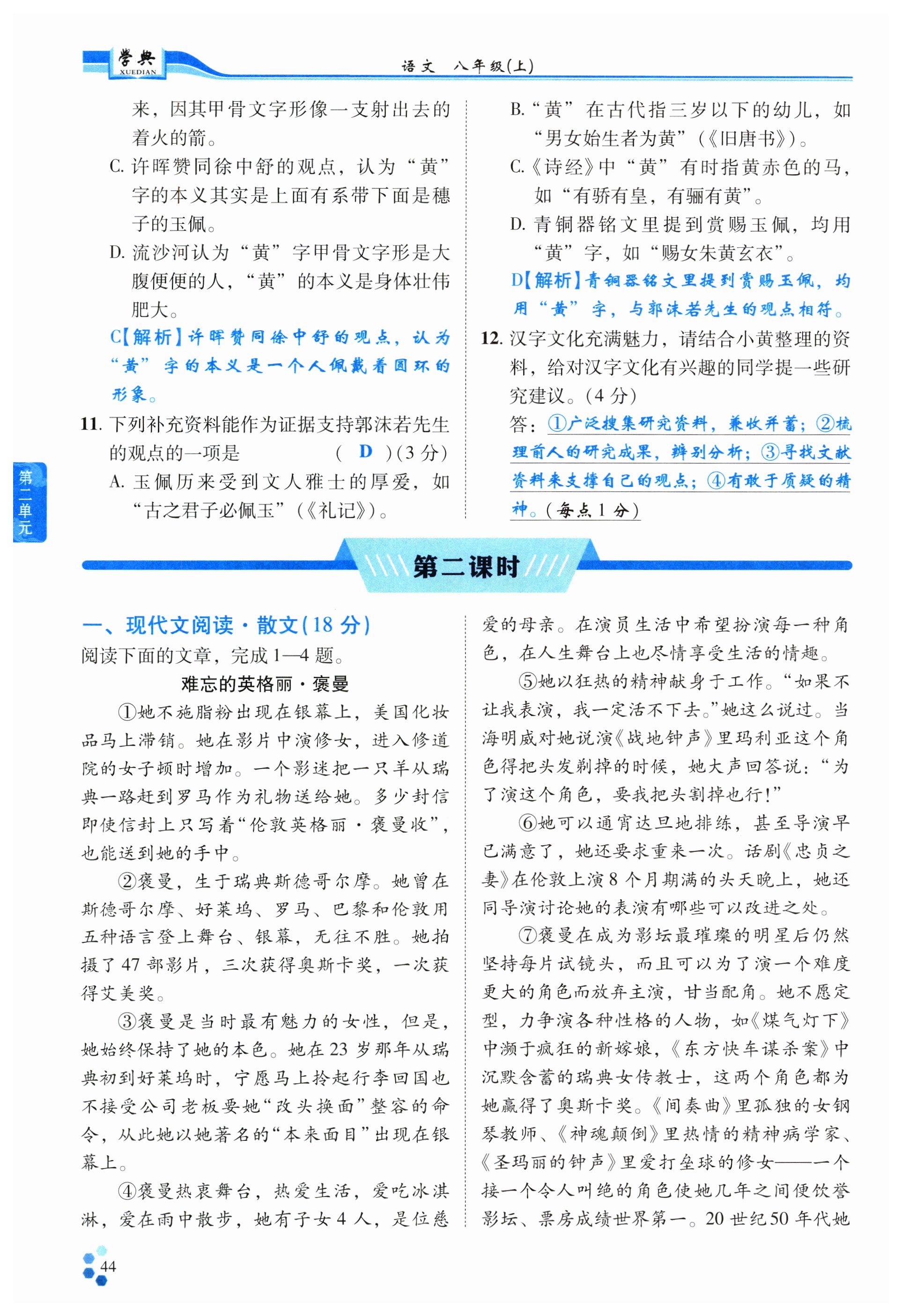 注:目前有些书本章节名称可能整理的还不是很完善,但都是按照顺序排列的,请同学们按照顺序仔细查找。练习册 2024年学典四川八年级语文上册人教版 答案主要是用来给同学们做完题方便对答案用的,请勿直接抄袭。