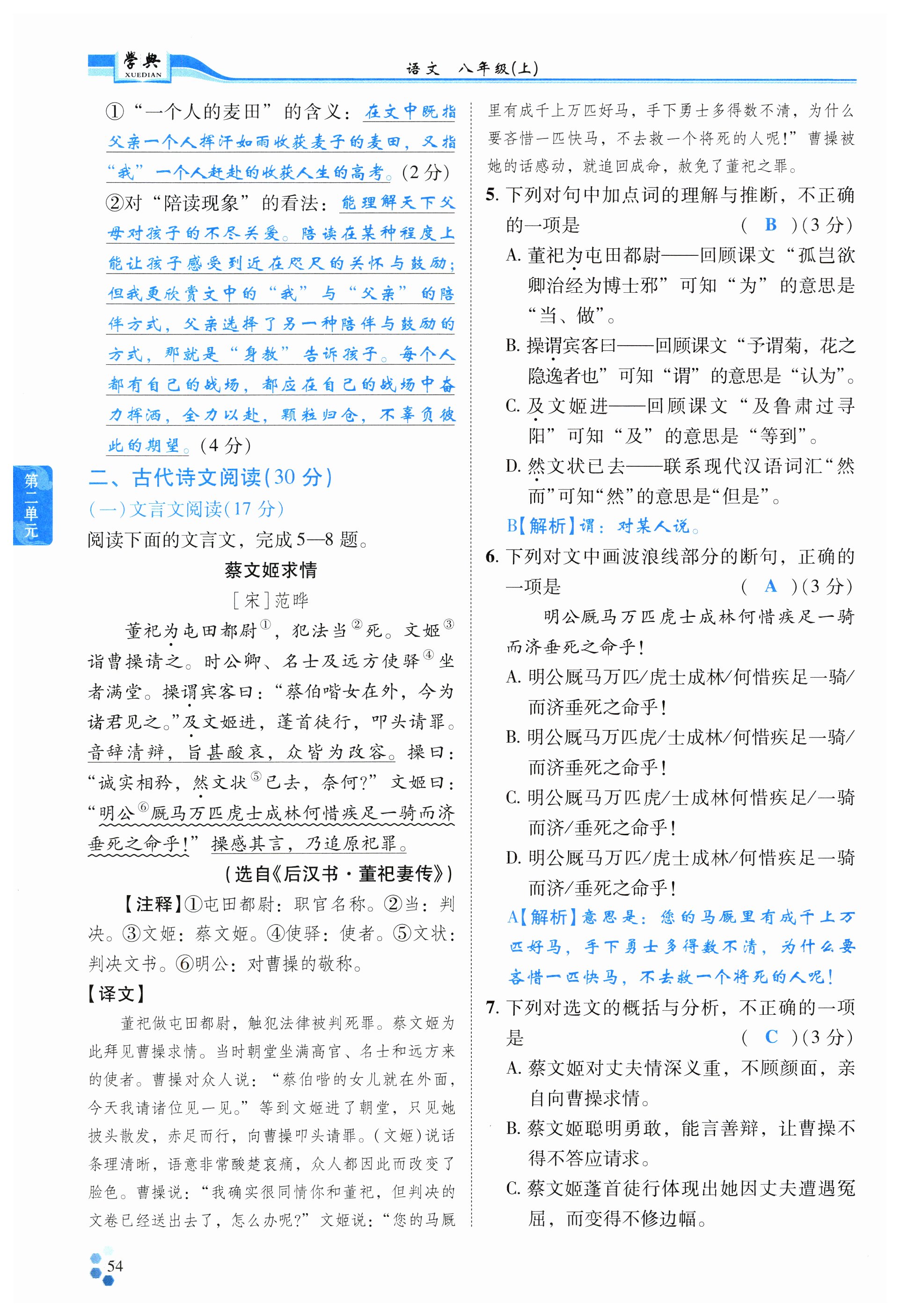 注:目前有些书本章节名称可能整理的还不是很完善,但都是按照顺序排列的,请同学们按照顺序仔细查找。练习册 2024年学典四川八年级语文上册人教版 答案主要是用来给同学们做完题方便对答案用的,请勿直接抄袭。