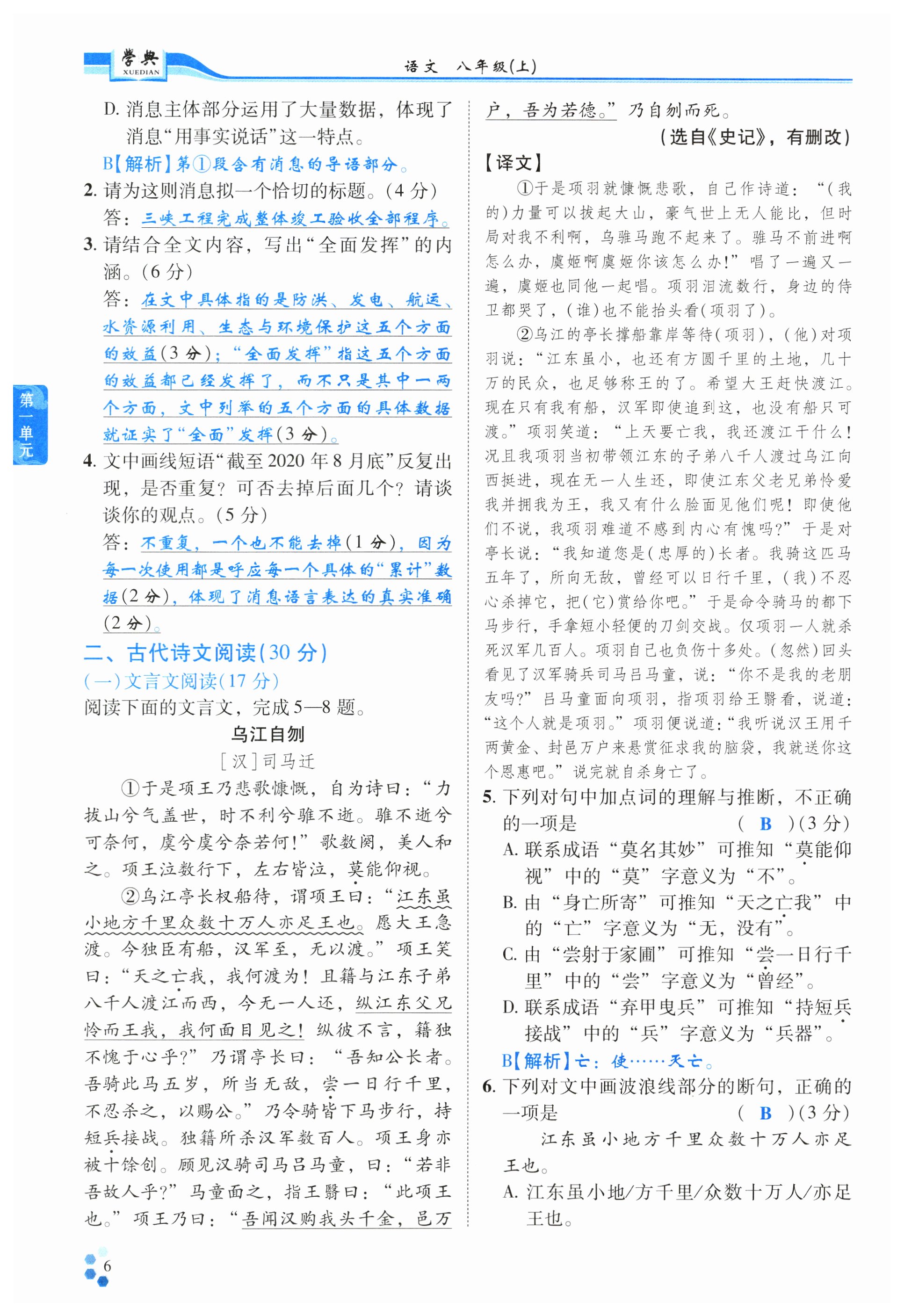 注:目前有些书本章节名称可能整理的还不是很完善,但都是按照顺序排列的,请同学们按照顺序仔细查找。练习册 2024年学典四川八年级语文上册人教版 答案主要是用来给同学们做完题方便对答案用的,请勿直接抄袭。