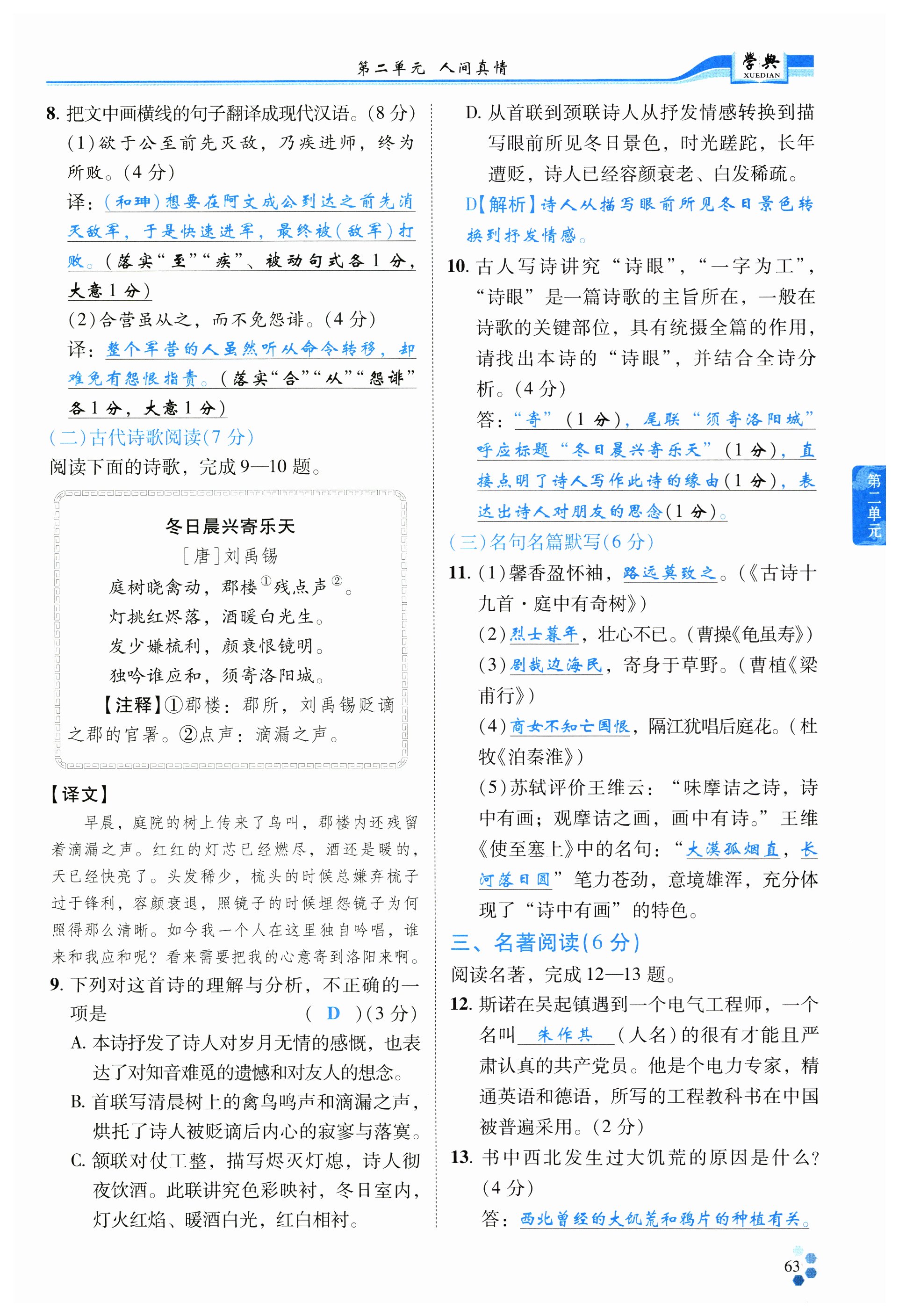 注:目前有些书本章节名称可能整理的还不是很完善,但都是按照顺序排列的,请同学们按照顺序仔细查找。练习册 2024年学典四川八年级语文上册人教版 答案主要是用来给同学们做完题方便对答案用的,请勿直接抄袭。