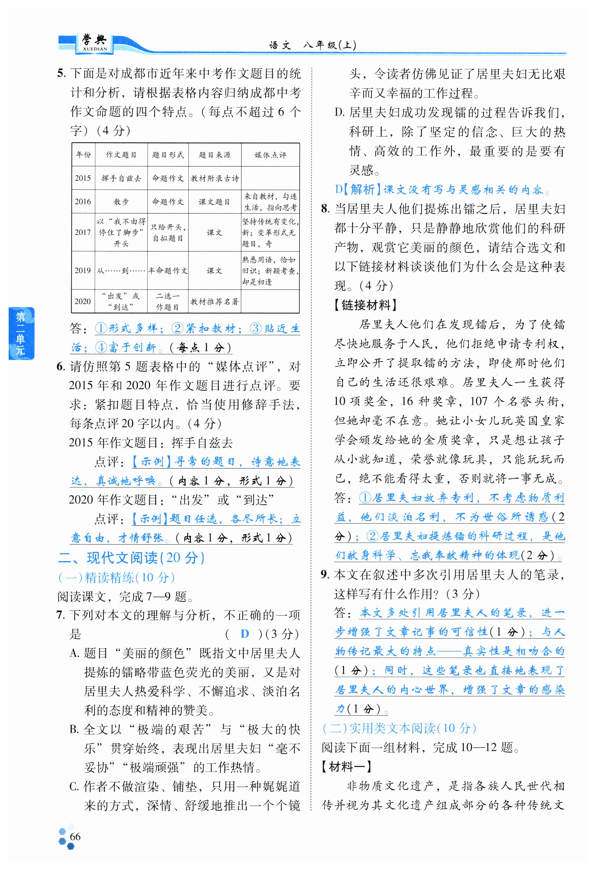 注:目前有些书本章节名称可能整理的还不是很完善,但都是按照顺序排列的,请同学们按照顺序仔细查找。练习册 2024年学典四川八年级语文上册人教版 答案主要是用来给同学们做完题方便对答案用的,请勿直接抄袭。