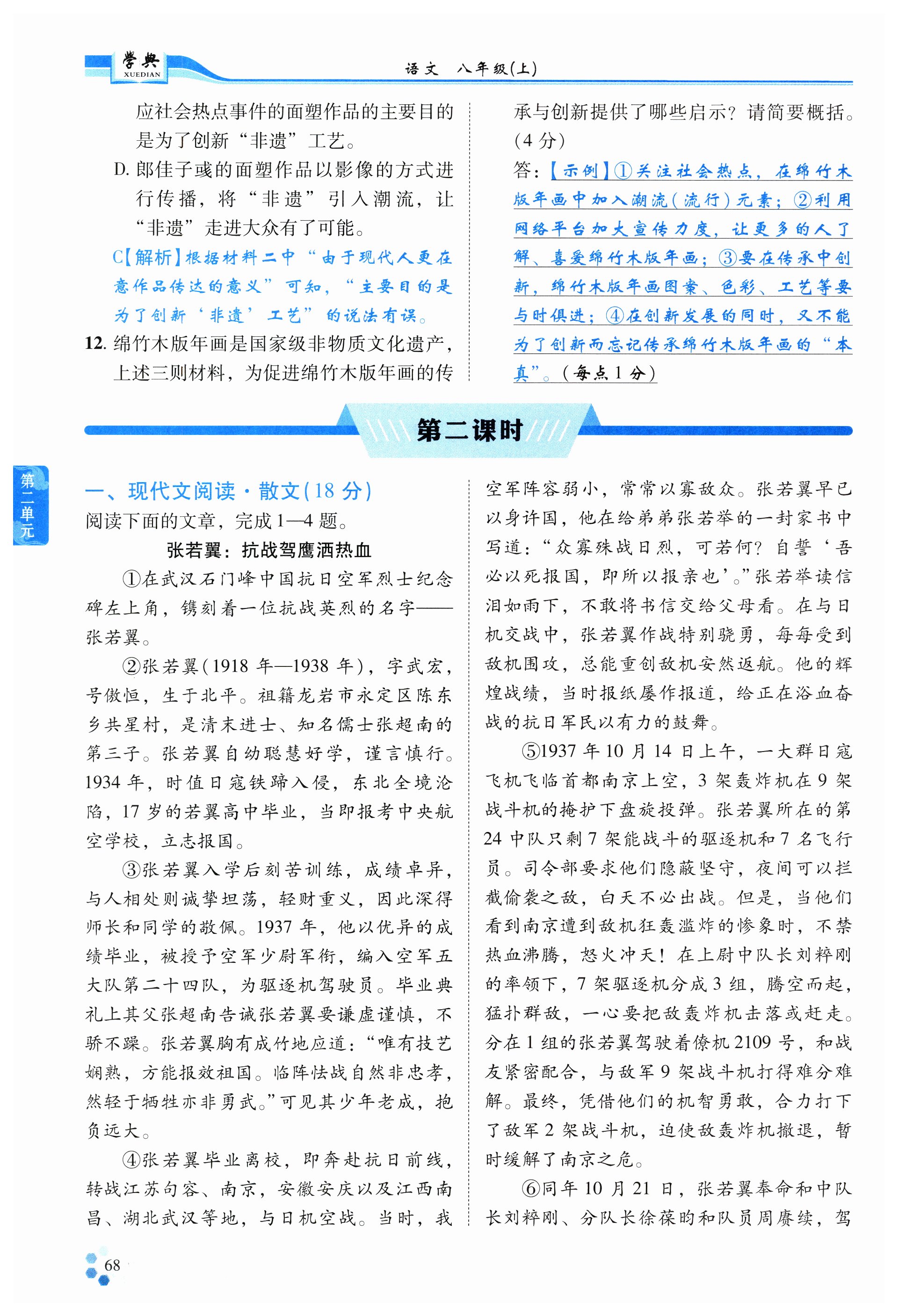 注:目前有些书本章节名称可能整理的还不是很完善,但都是按照顺序排列的,请同学们按照顺序仔细查找。练习册 2024年学典四川八年级语文上册人教版 答案主要是用来给同学们做完题方便对答案用的,请勿直接抄袭。
