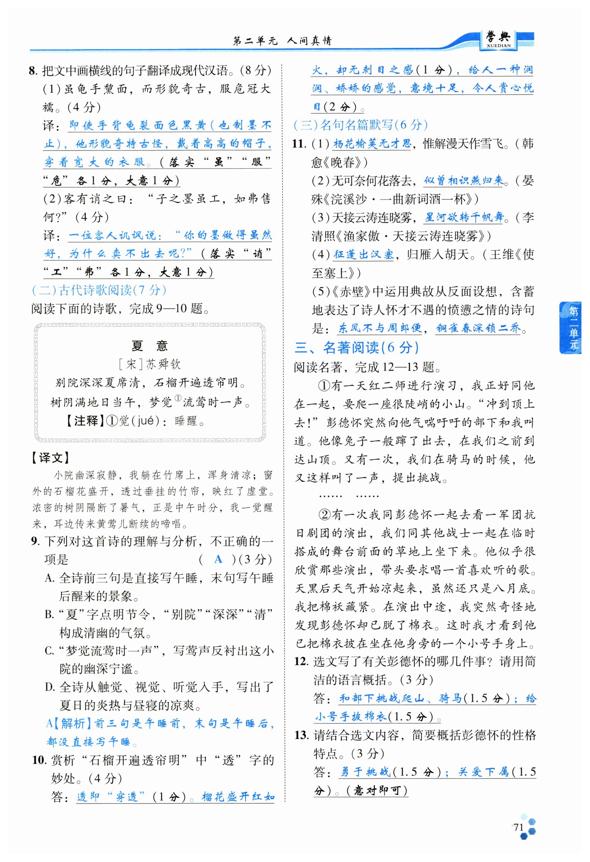 注:目前有些书本章节名称可能整理的还不是很完善,但都是按照顺序排列的,请同学们按照顺序仔细查找。练习册 2024年学典四川八年级语文上册人教版 答案主要是用来给同学们做完题方便对答案用的,请勿直接抄袭。