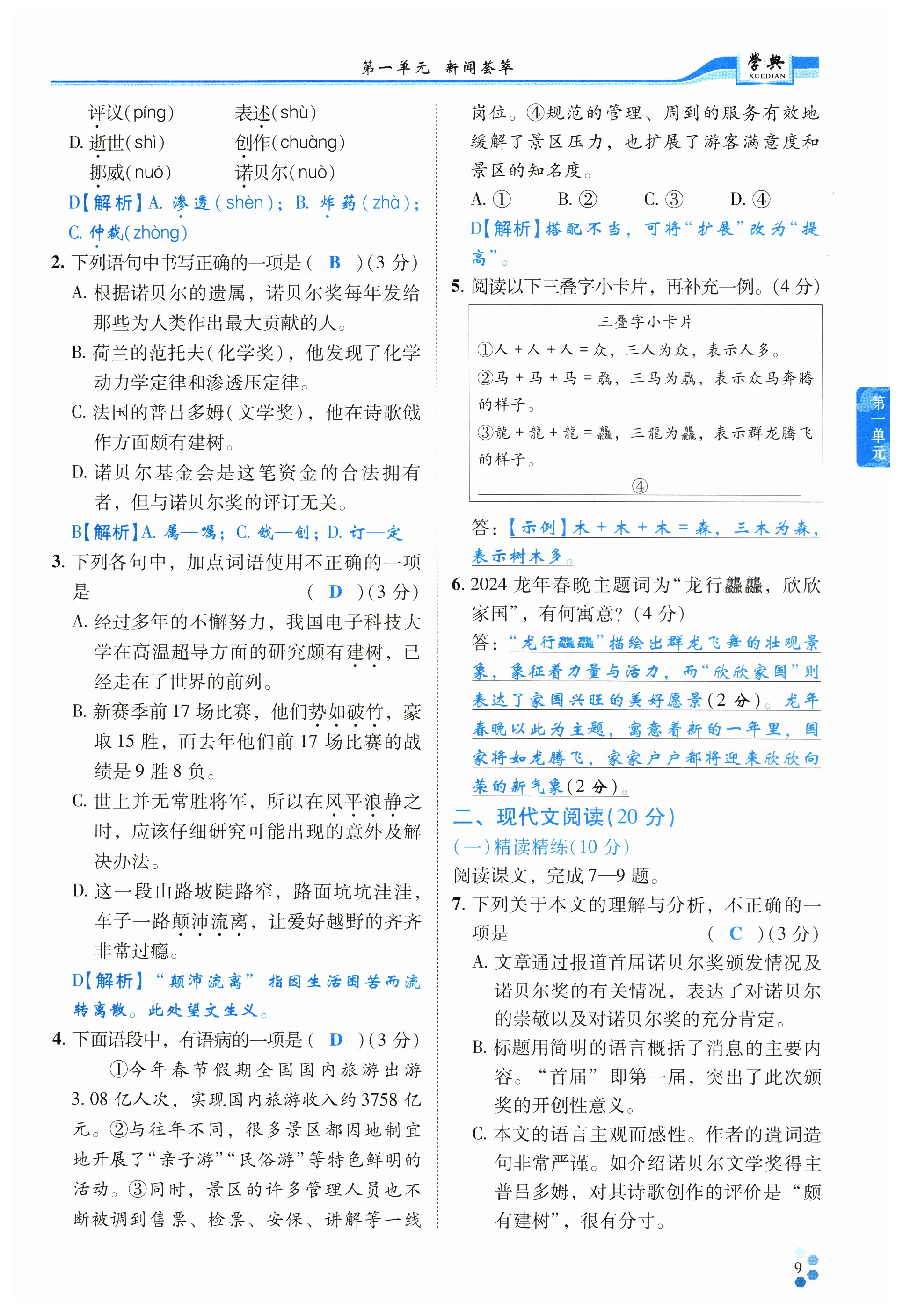 注:目前有些书本章节名称可能整理的还不是很完善,但都是按照顺序排列的,请同学们按照顺序仔细查找。练习册 2024年学典四川八年级语文上册人教版 答案主要是用来给同学们做完题方便对答案用的,请勿直接抄袭。